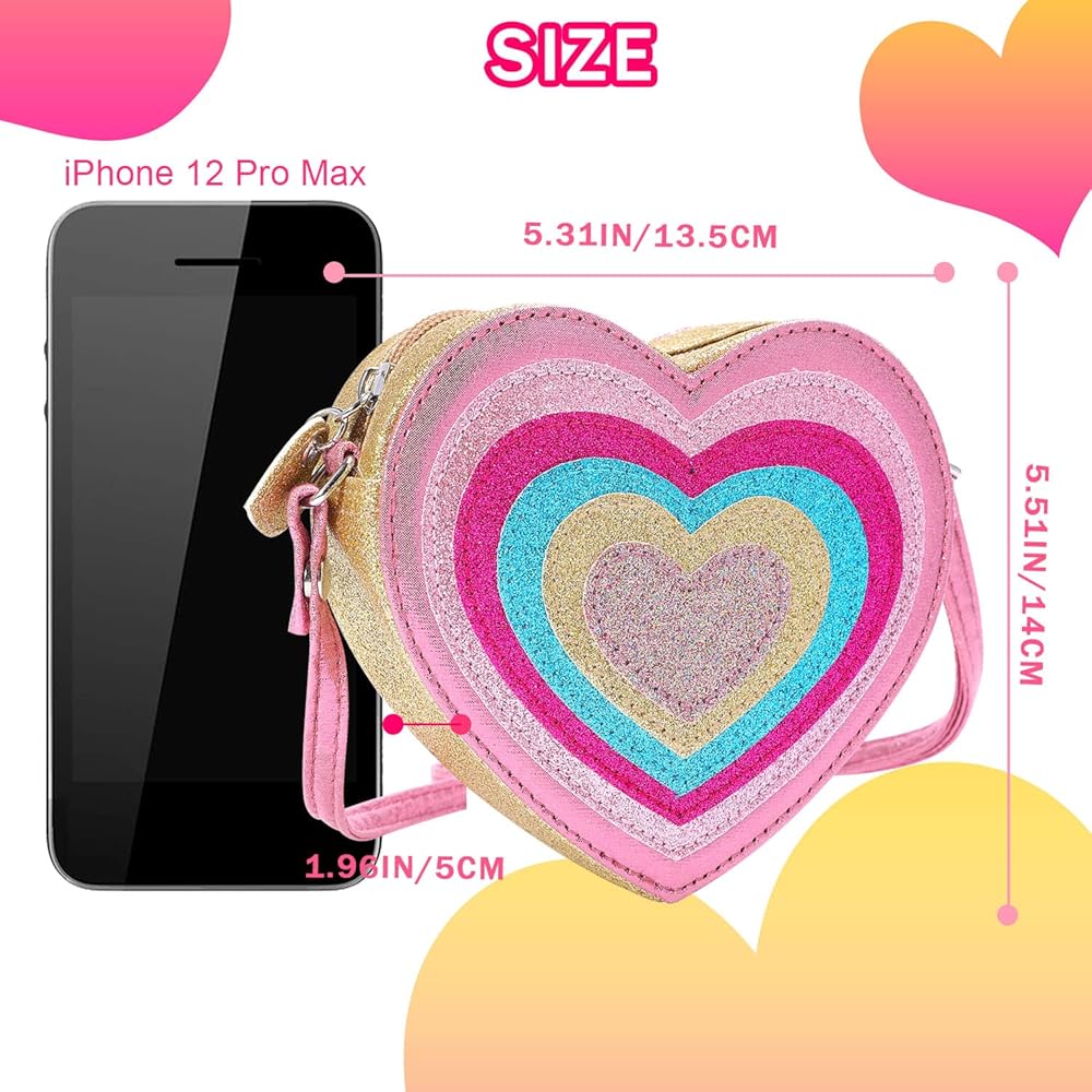 ☀️【Mini Size】 6.5''x 6.5'''x 2'' (LxHxW),adjustable strap. Perfect for a little girl to carry her bracelets, lip gloss, accessories, play makeup or her other special treasures.(Couldn't Fit PHONE).