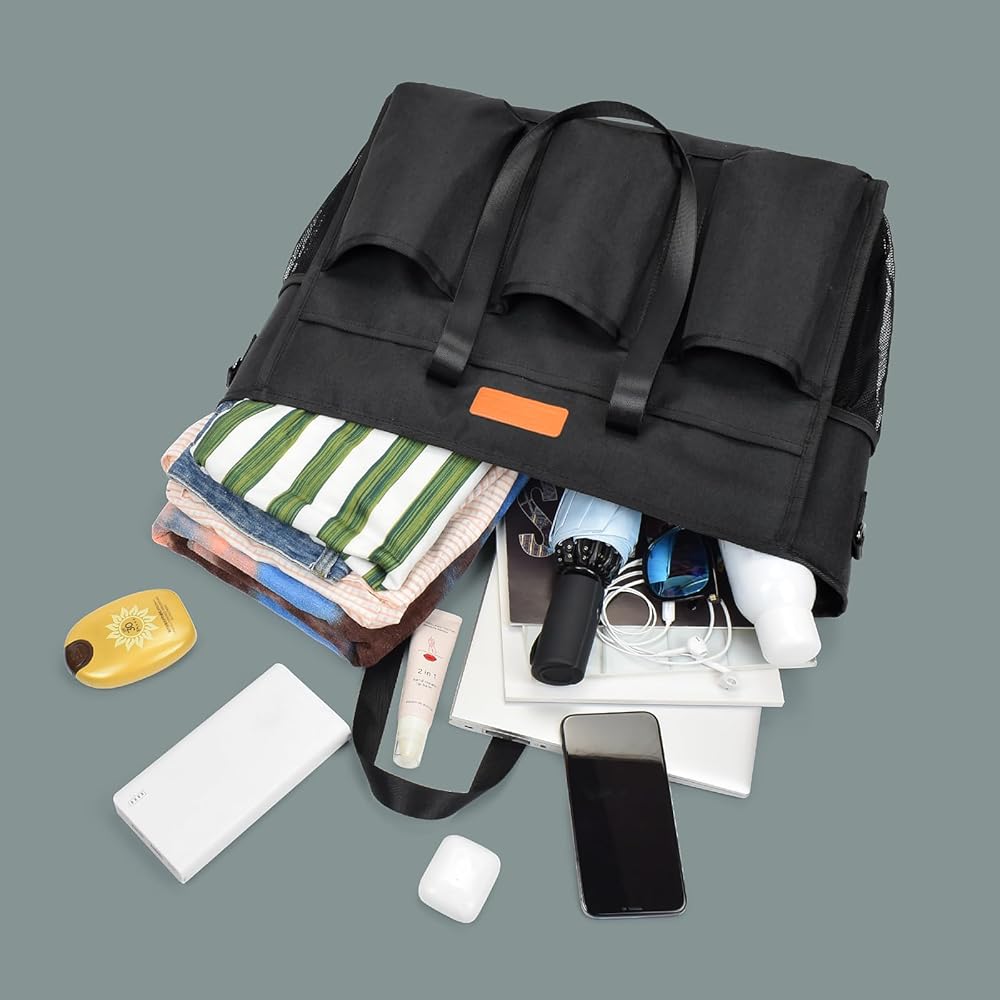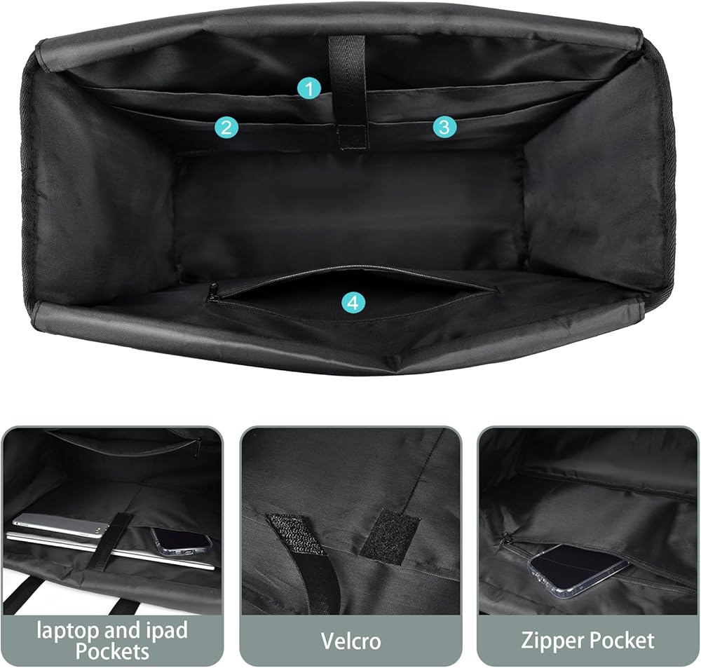 Versatile Size and Design: The large size of 16.5 L*7 W*13 H inch and adjustable shoulder strap up to 49 inch make it suitable for various uses. The foldable bottom board enhances load-bearing capacity.