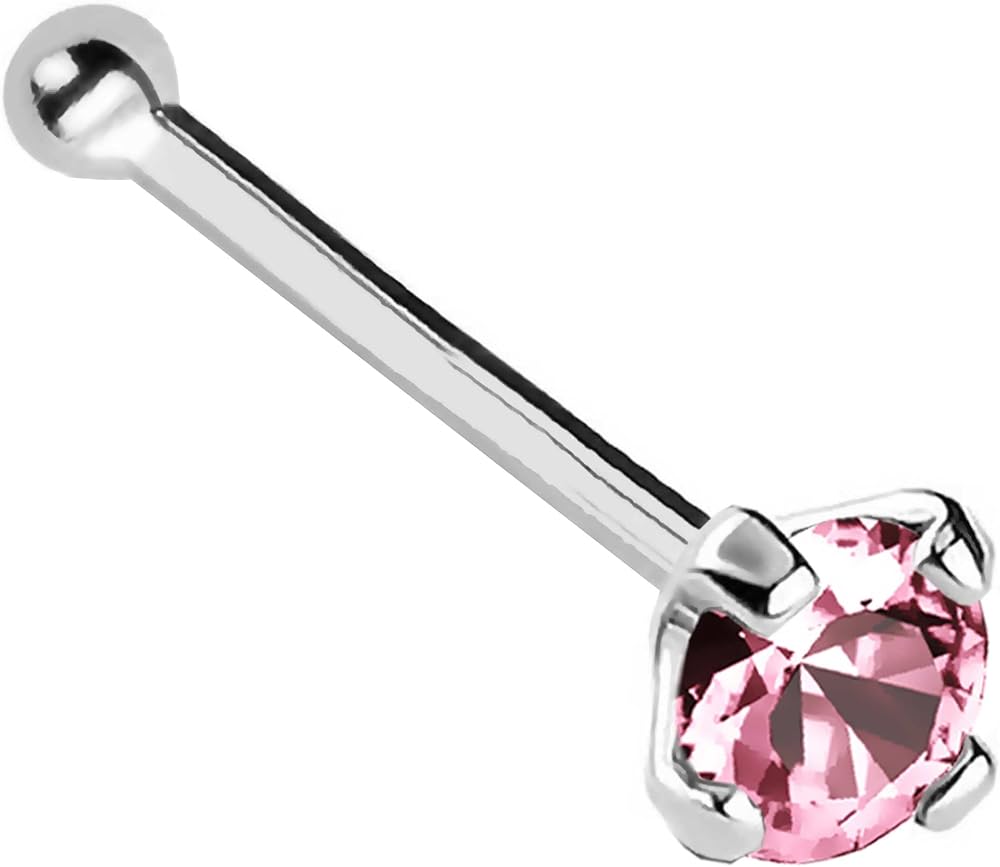 This listing is for 1 piece of Solid 14Kt Yellow Gold or 14Kt White Gold 22G Nose Bone Stud Ring with your choice of real Pink Tourmaline Gemstone size 1mm, 1.5mm, 2MM, or 2.5mm