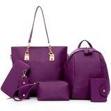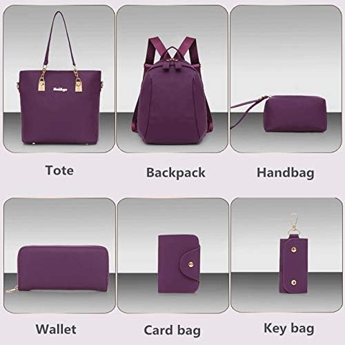 Name: Women 6 PCS Waterproof Nylon Handbag Tote Backpack Purse Set