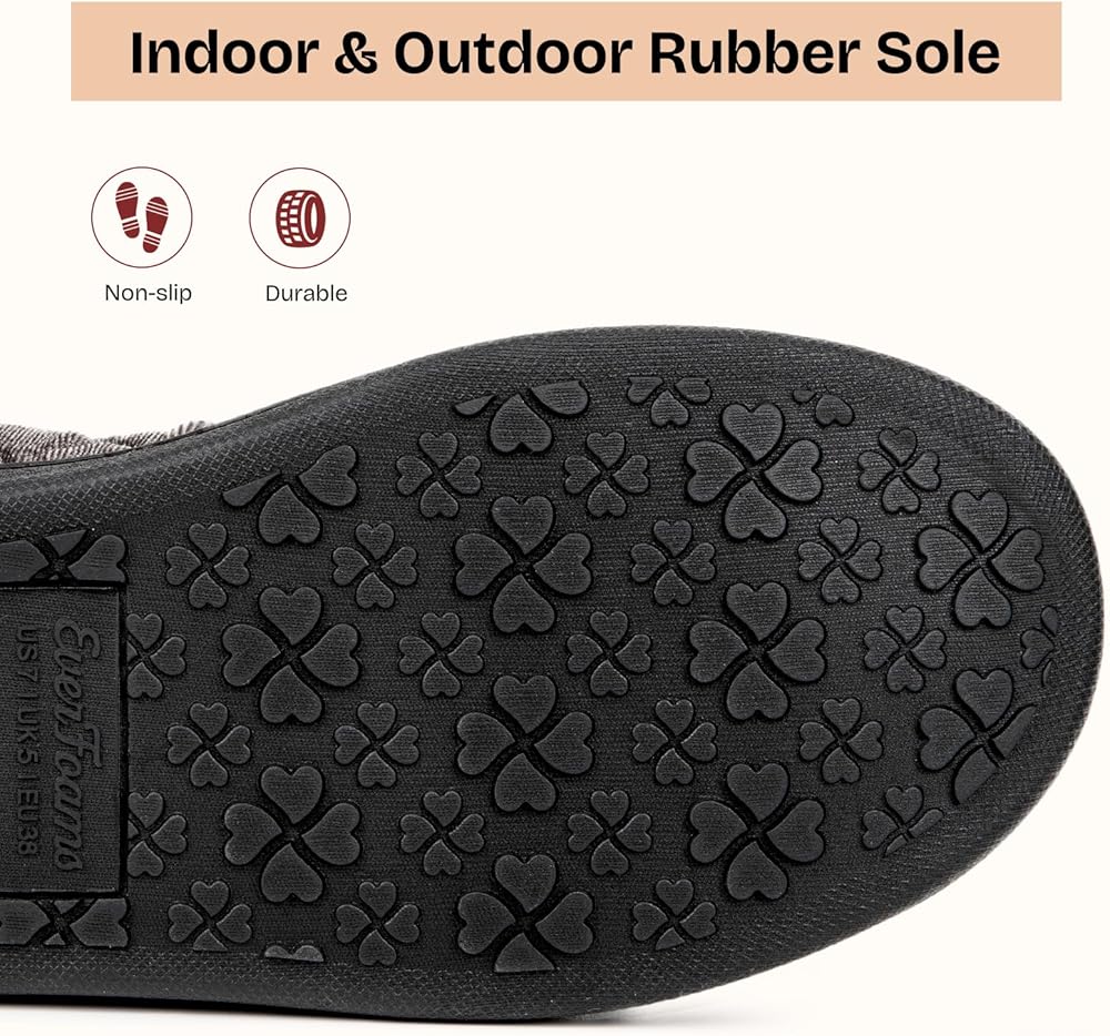 - It's designed with a non-slip and durable rubber outsole, keeping steps steady as you move around the house for various indoor and outdoor activities.