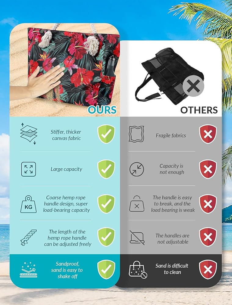 【Beach/holiday/travel necessities】This oversized beach bag is very suitable for beach family time, pool party, picnic, etc! It has a classic nautical design, and can easily be used as cruise bags, travel bags, sports bags, holiday bags, overnight bags, swimming pool bags, gym bags, grocery bags, and even carry on bags on flights to store laptops and other necessities.