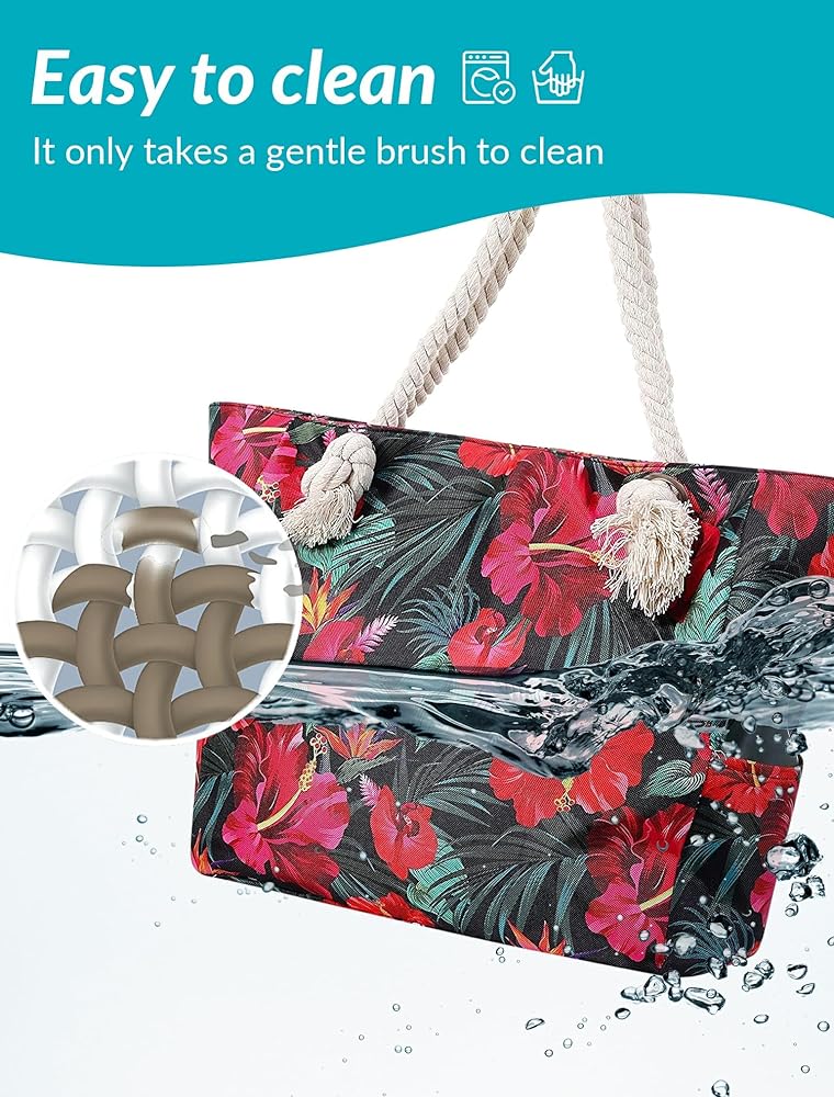 【Waterproof, sand free and durable]】After a lot of market research and thousands of tests, high-quality waterproof and sand proof fabrics were finally selected. The thickened hemp rope material provides additional strength, increases the bearing capacity and maximum safety, and will not break or tear. Its waterproof design makes this elegant beach bag the best choice for outdoor activities or carry on bags.