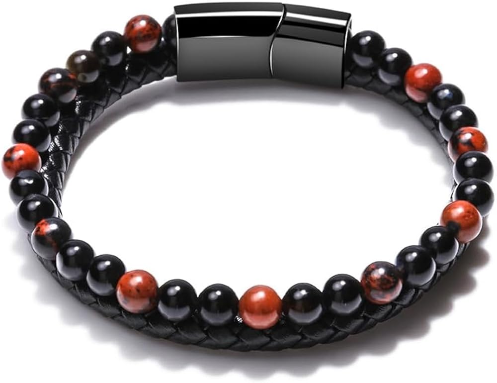【High Quality Materials】Multi-Layer Braided Bracelet Is Made Of Soft Leather, Top Grade Stainless Steel Clasp, And Natural Stone (Volcanic Stone, Tiger Eye Stone, Hematite Stone Etc.), Fine polishing, mirror finish, lead-free and nickel-free, long-lasting electroplating coating is scratch-resistant and fade-resistant.