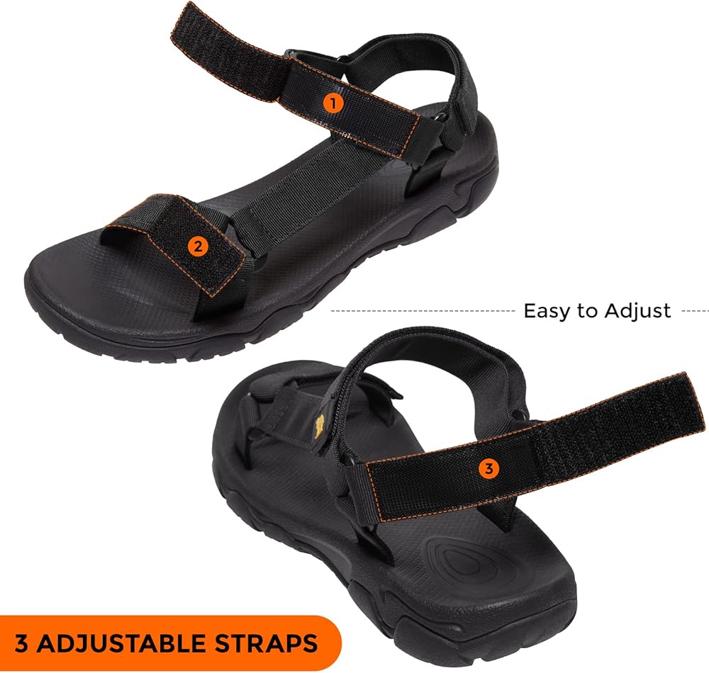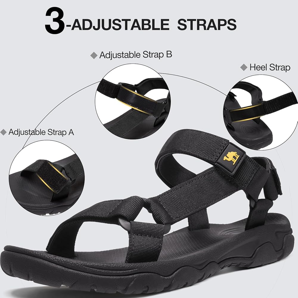 【Adjustable & Convenient】—The sports sandals have three adjustable straps, so you can freely adjust the tightness of the upper to fit your feet. They are convenient and easy to wear on and wear off.