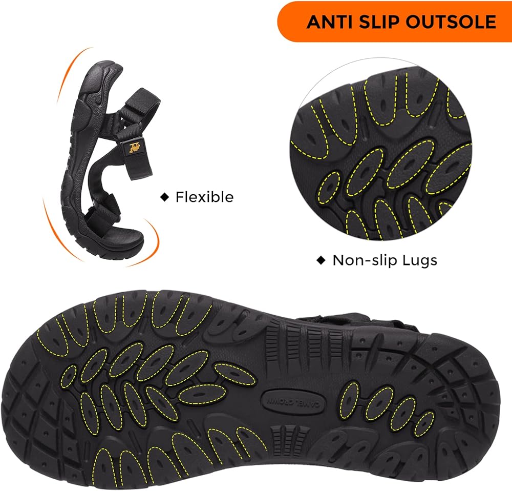 【Anti-slip Outsole】— Non-slip rubber outsole with deep lugs makes walking safer. The fluxional material of walking sandals makes your feet more comfortable.