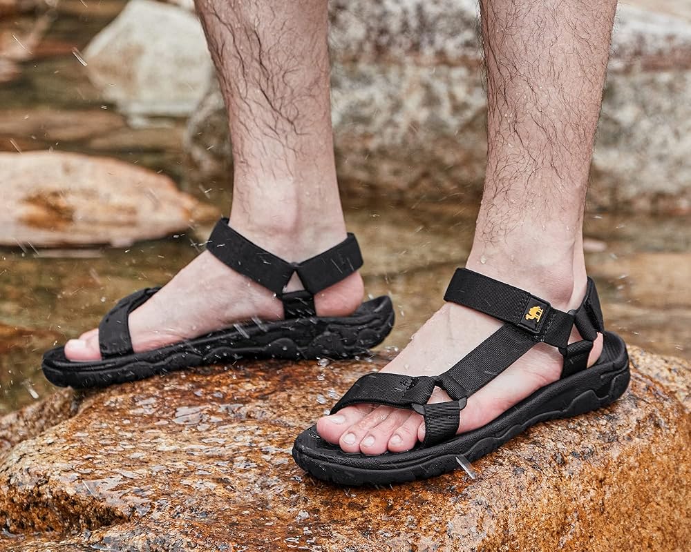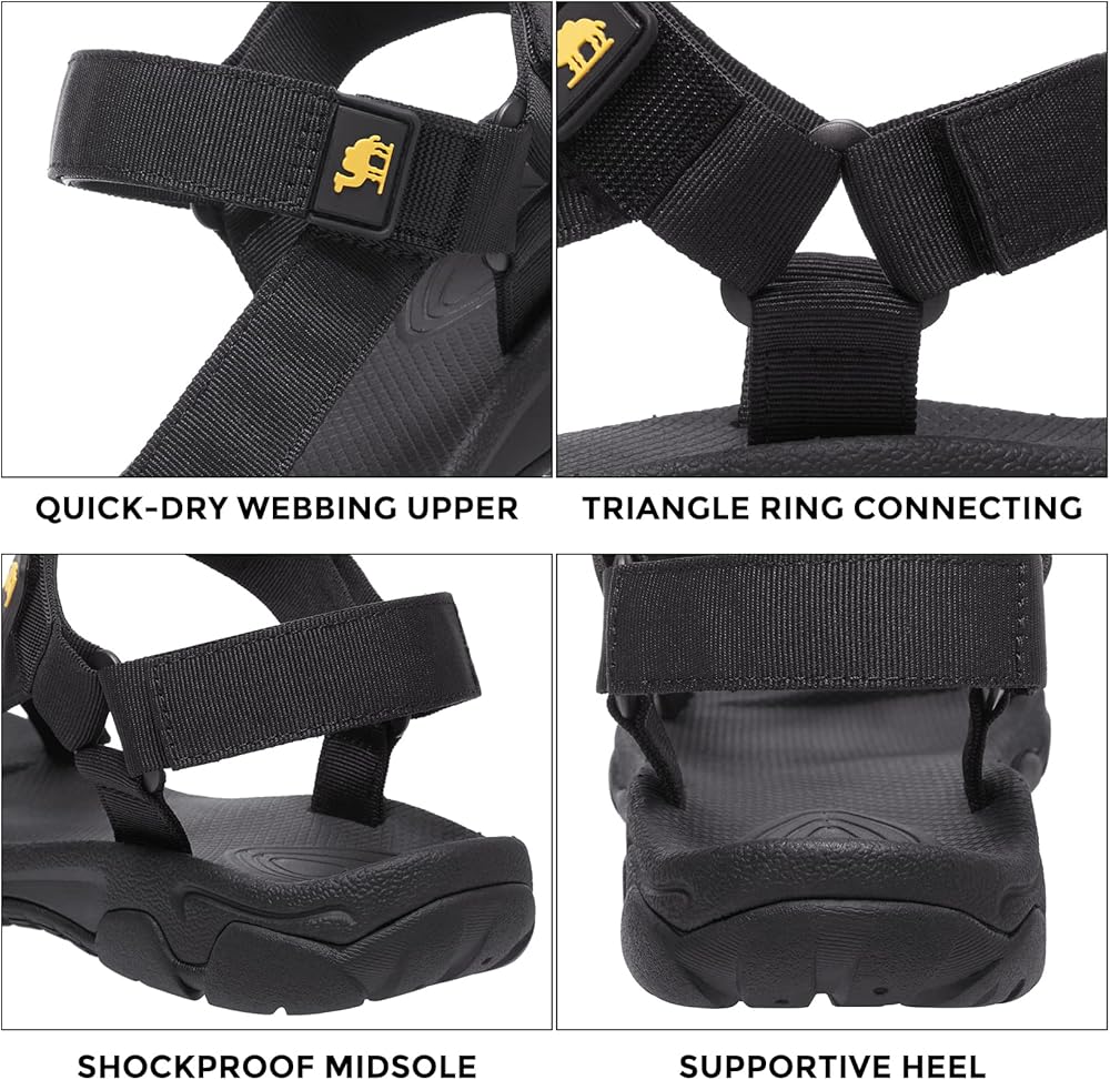 【Soft & Durable】—Made of soft quick-drying webbing, these men's hiking sandals are comfortable and durable, and dry quickly after getting wet.