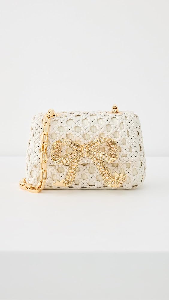 Self Portrait Women's Cream Woven Leather Micro Bag
