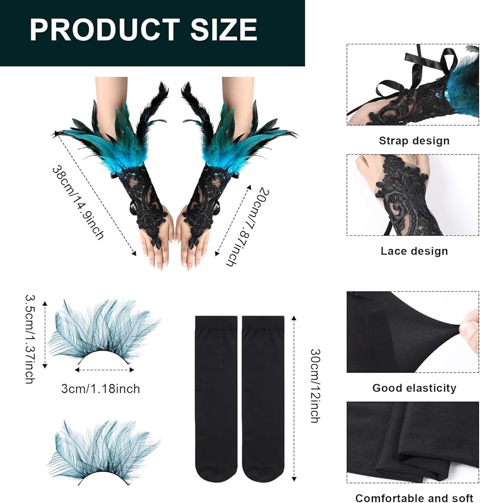 The raven costume contains different accessories which can save your time and energy to find and match in person. Can be applied to various theme party.