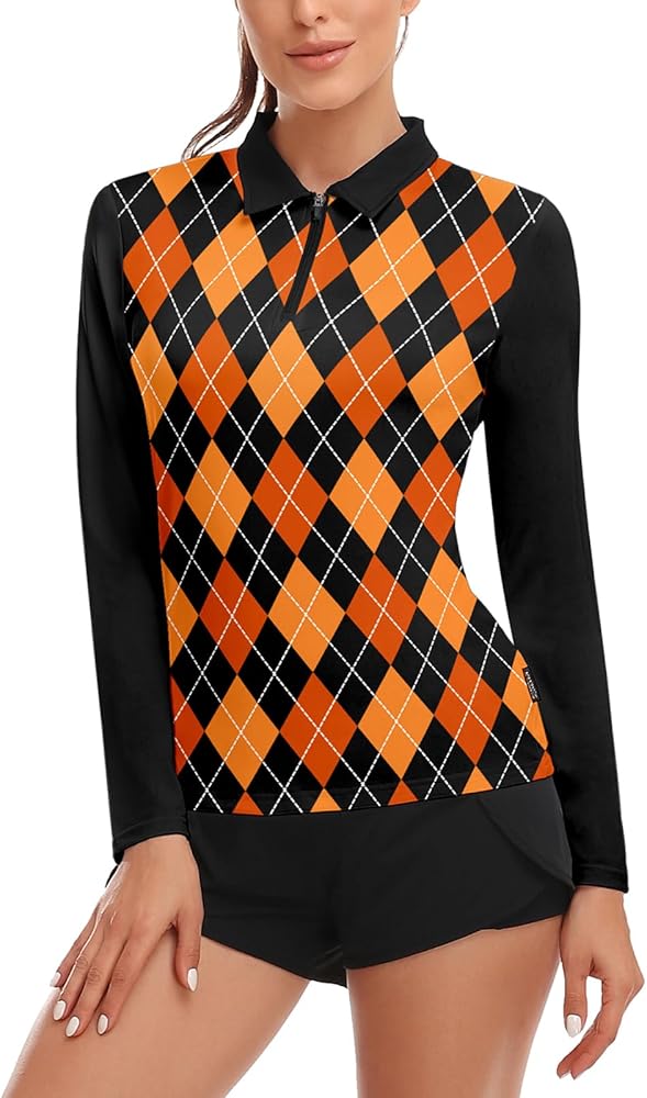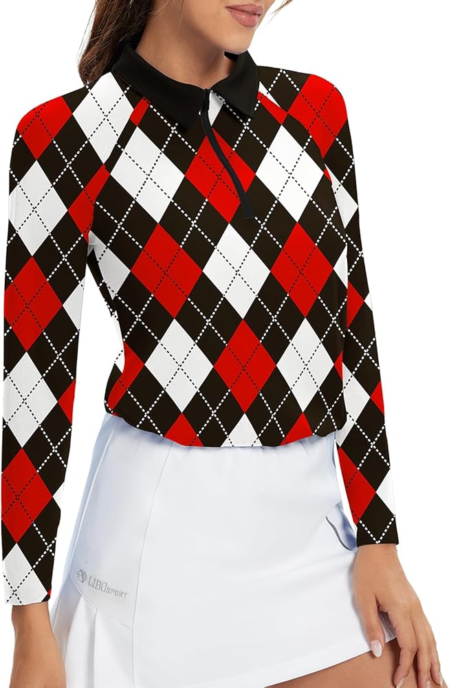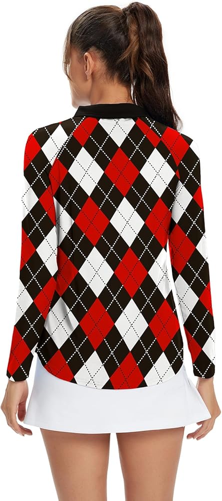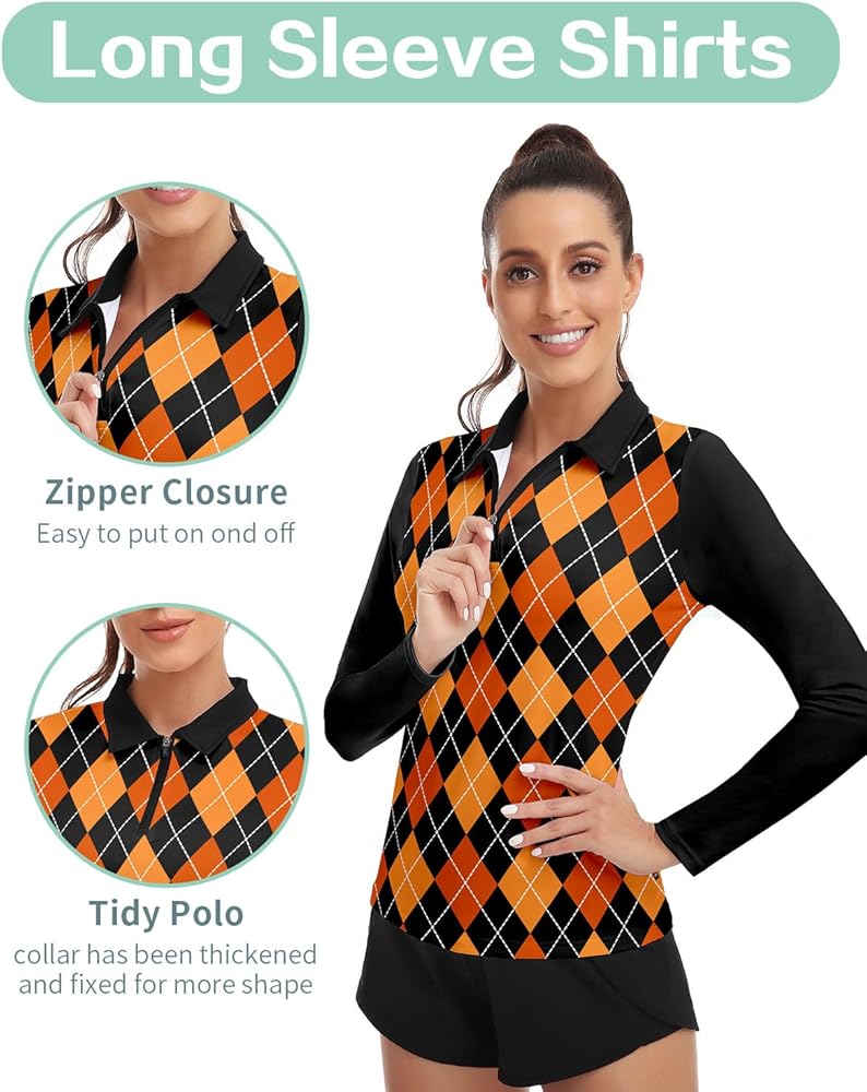 【Womens Athletic Tennis Shirt for Many Occations】The golf zip polo shirt utilizes dry fit material which is perfect for golf,tennis,workout,running,jogging,any type of sports or everyday wear. The sports polo shirt for women/laides Golf plaid shirt pairs well with jeans, leggings, skirt, shorts.
