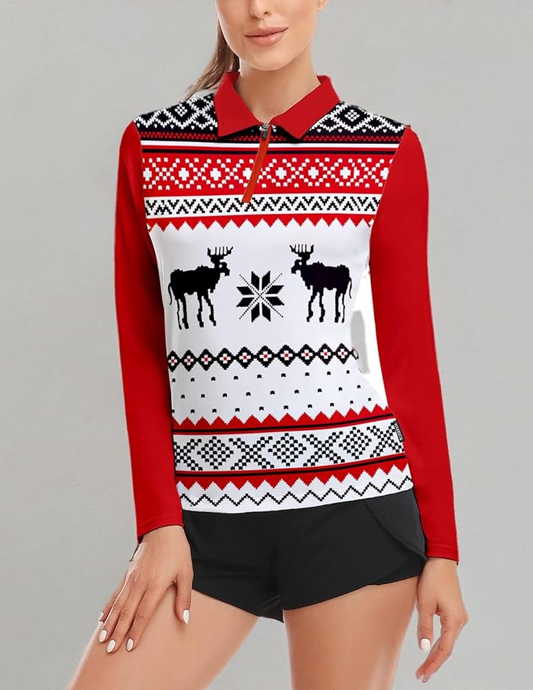 【Golf Shirts for Women Half Zip Golf Pullover】Women polo shirt adopts moisture wicking,silky,breathable and solf fabric,which keep you fresh and comfortable all day. Half zip golf pullover for women with 4-way strech materials improve mobility for full range of motion.
