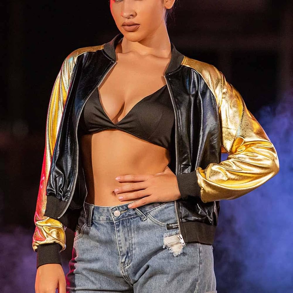 - Metallic zipper jackets have 3 size to choose-M,L,XL ,suitable for most women and girls.