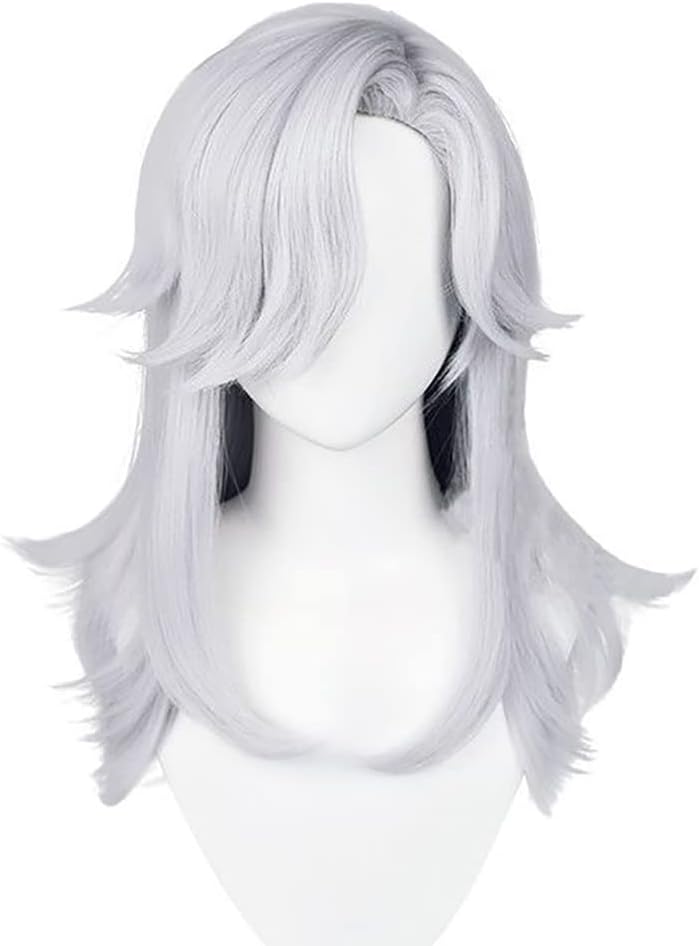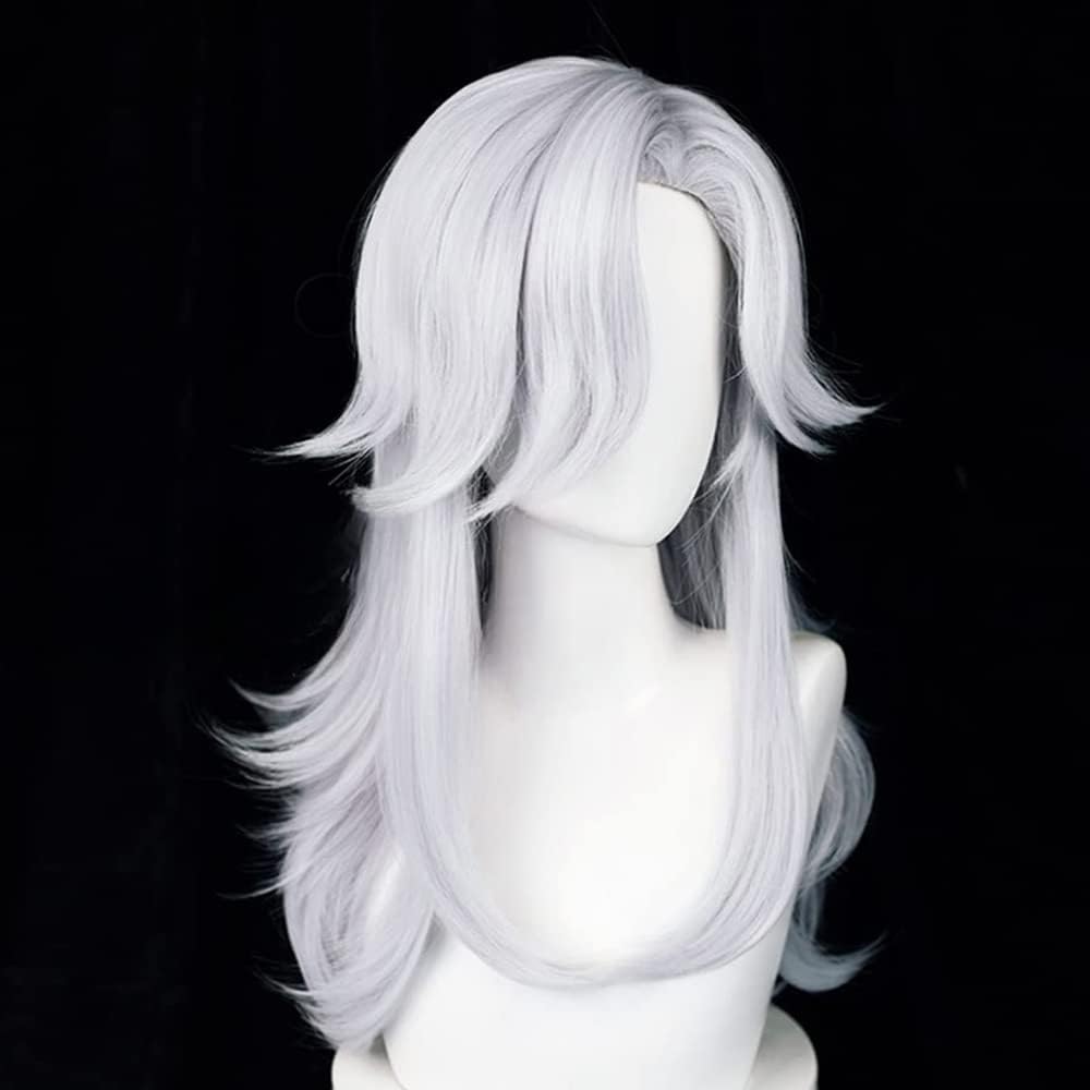 Cyno Sumeru Genshin Cosplay Wig Women Long Layered Silver White Hair