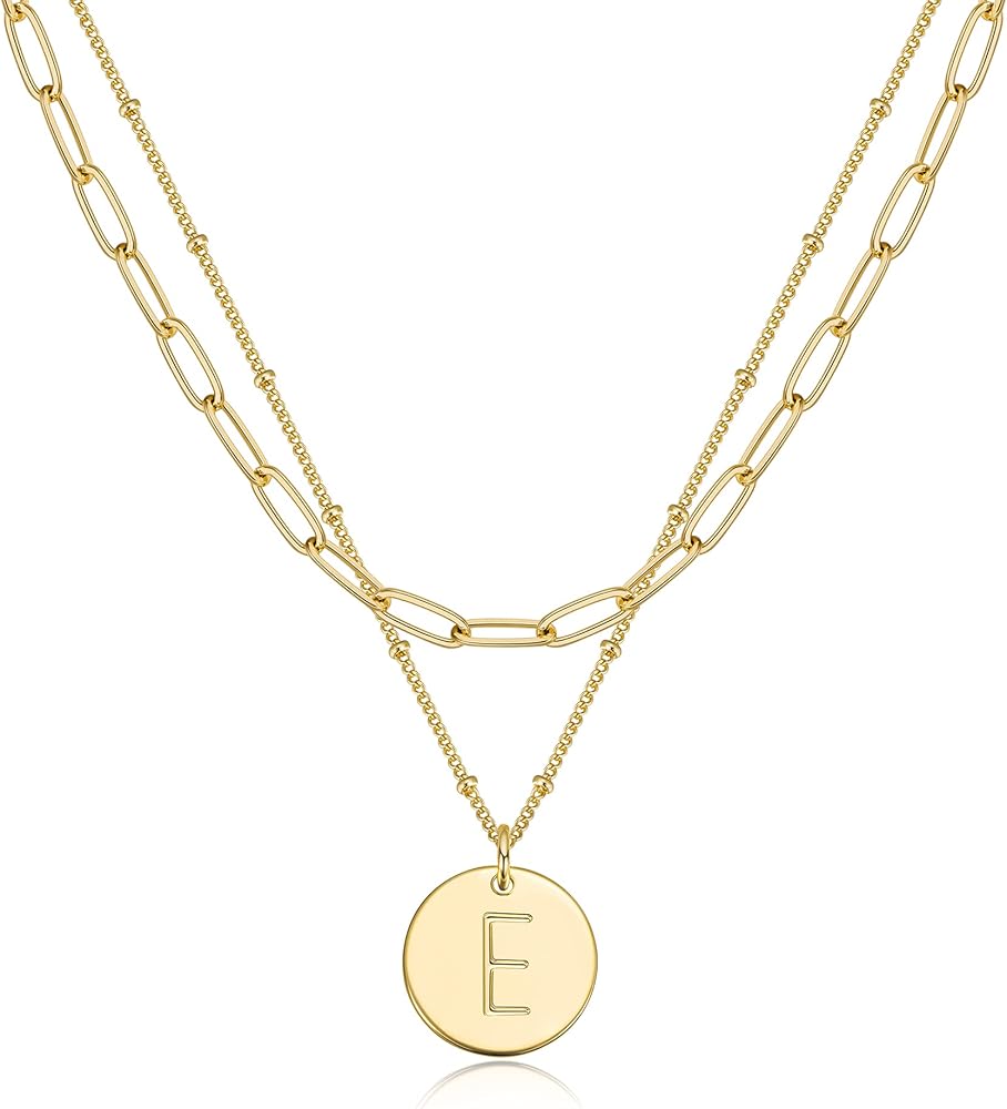 DESIGN: Gold double layered necklace, dainty paperclip choker with disc letter pendant necklaces. You can wear it alone or layered with other necklaces, it can be matched with any style in your closet. With its minimalist style, these necklaces can be worn as a daily accessory or be worn on special occasions.