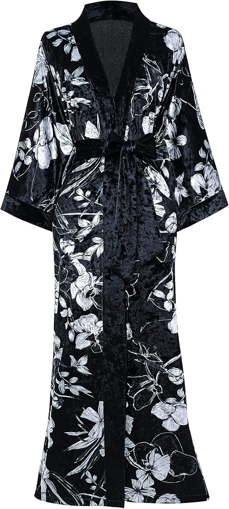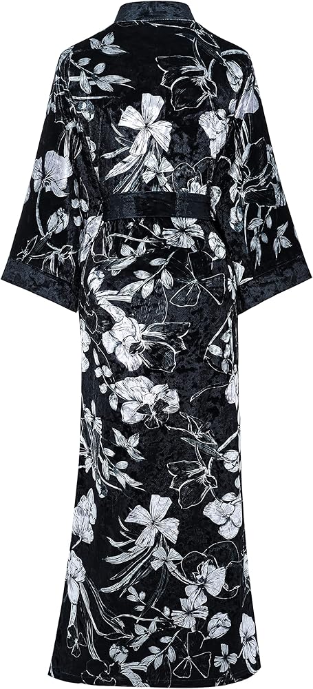 PRODESIGN Women's Long Velvet Robe Gold Printed Soft Warm Bathrobe Loose Sleepwear Nightgown