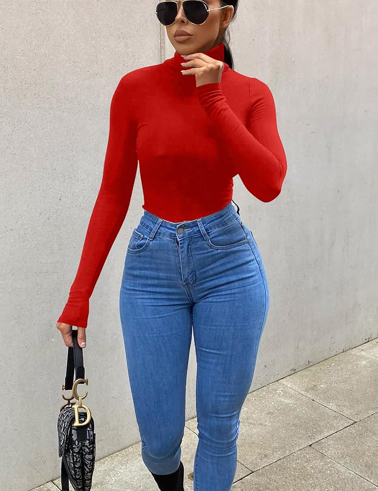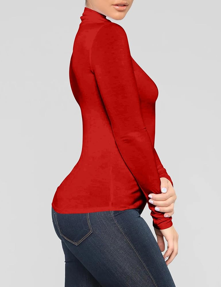 Feature:The tight long sleeve shirts for women features a mock high neck and a slim-fit design that fits perfectly into your body, show off your curves, warmth and not bloating.The fitted shirt is very perfect for spring, fall and winter