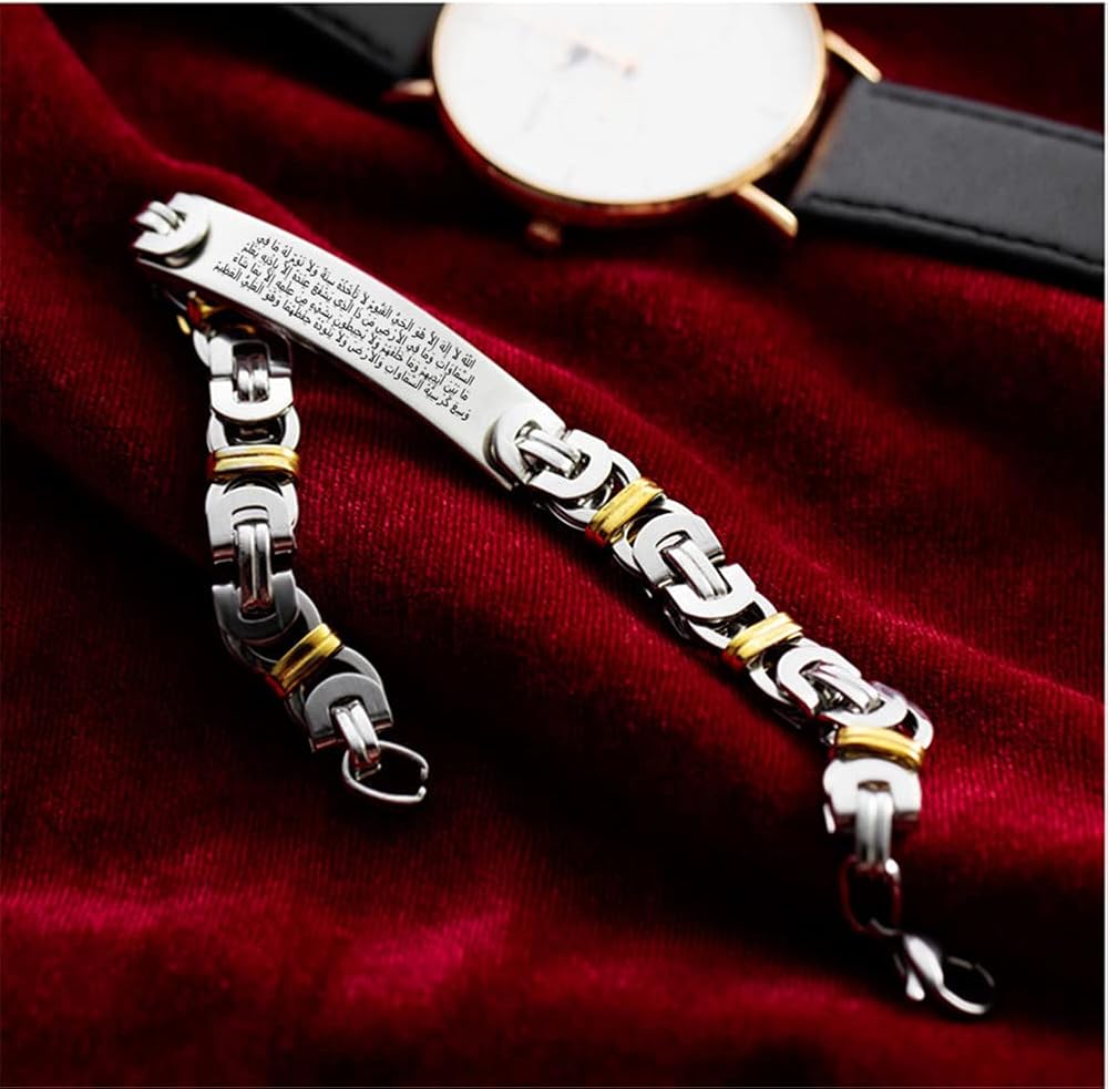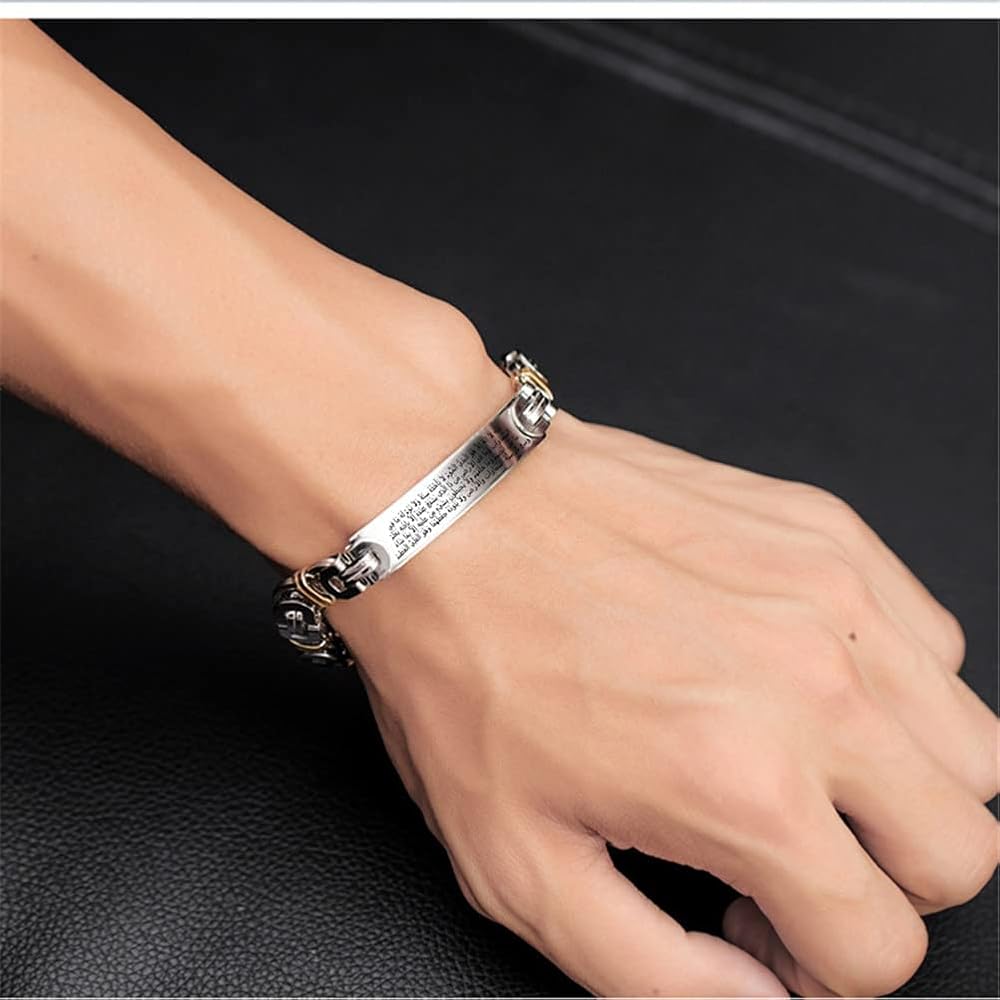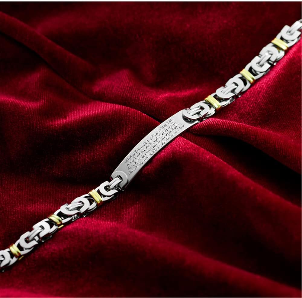 ForeverWill Stainless Steel Silver Gold Tone Ayatul Kursi Quran Byzantine Chain Bracelet with Lobster Claw, Islamic Arabic God Protection Jewelry Muslim Amulets Gifts for Men Women, 8.06 Inch