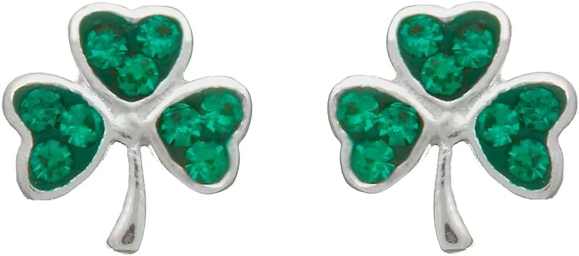 Biddy Murphy Shamrock Stud Earrings, 925 Sterling Silver, Emerald Green Cubic Zirconia, Women's Celtic Jewelry, Made in Ireland