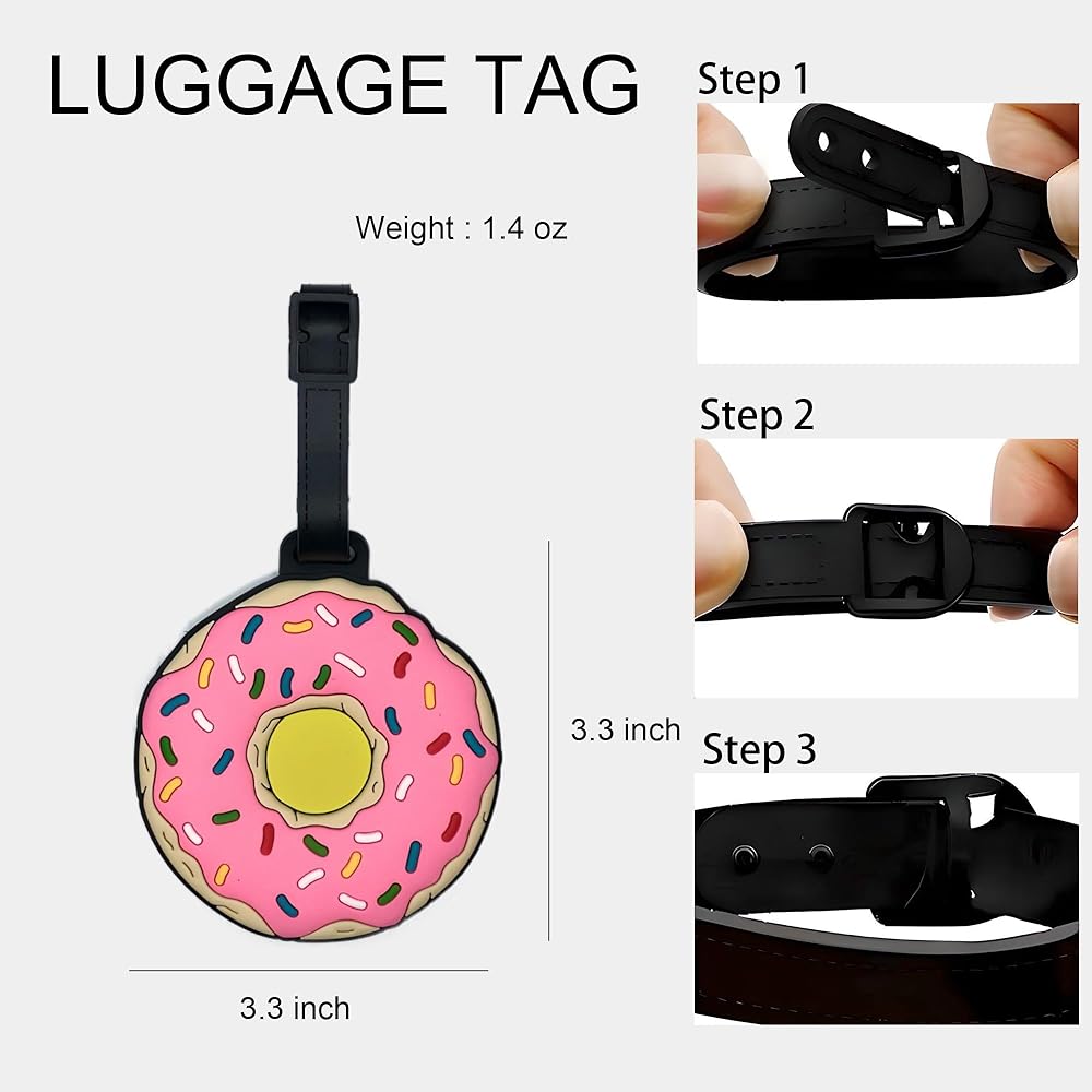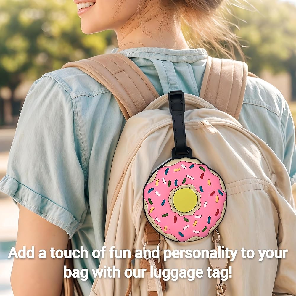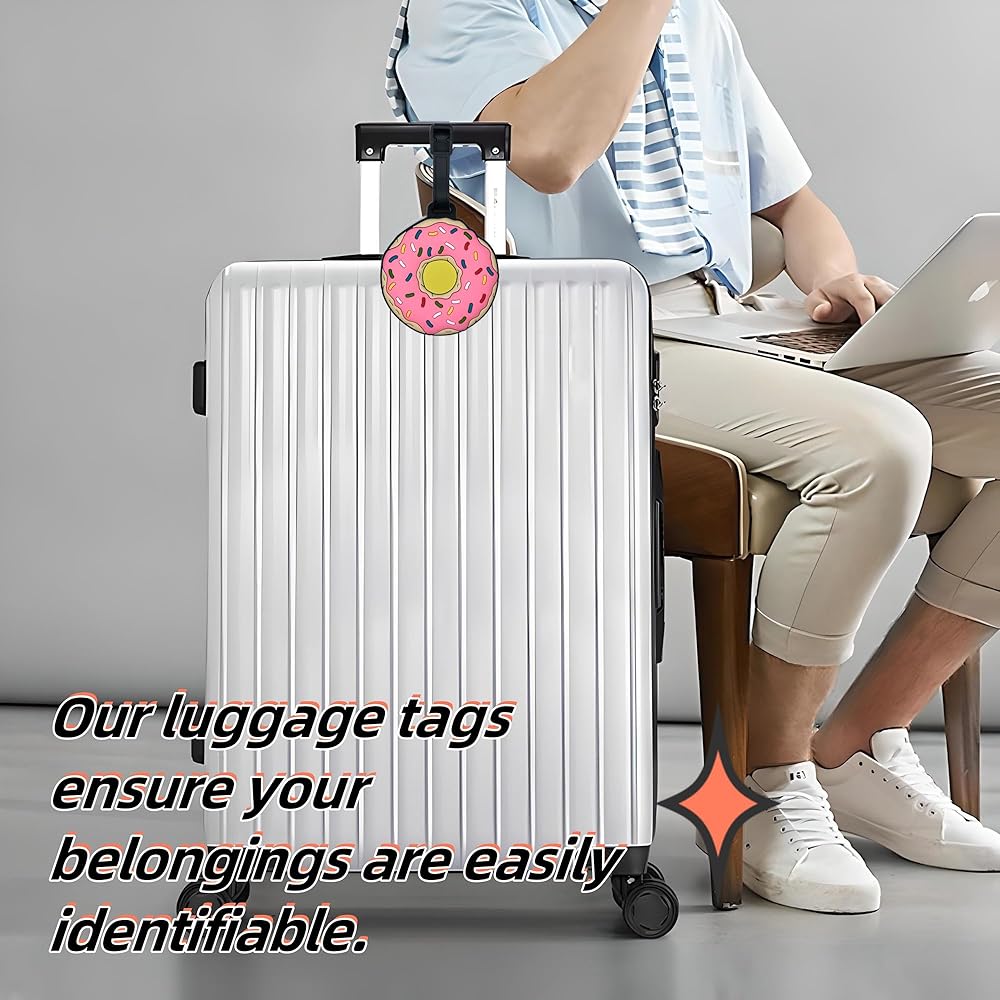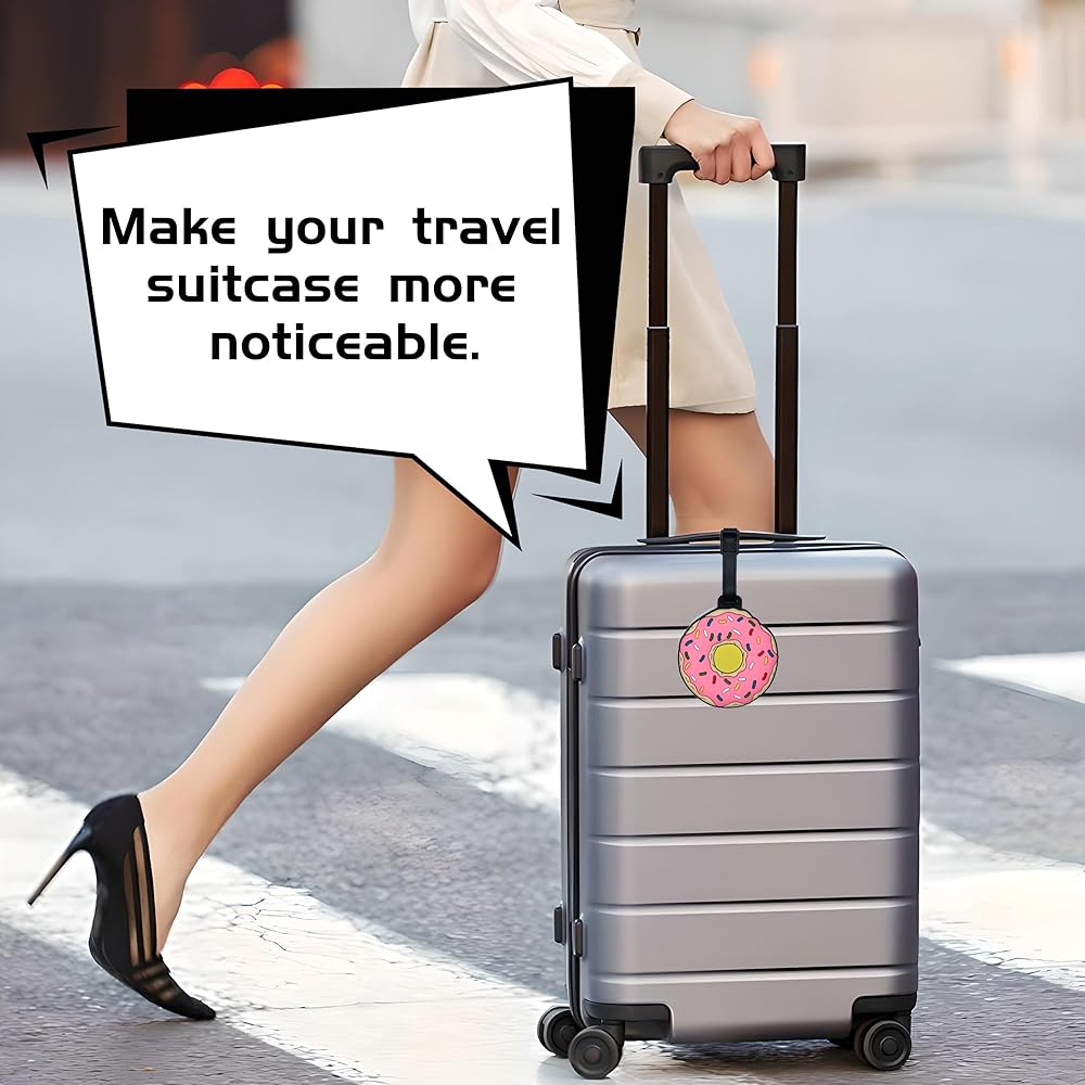 Luggage Tags – Cute Donut Bag Tag for Suitcases, Durable Silicone Travel ID Label with Information Card, Fun Accessories for Women, Men, Kids