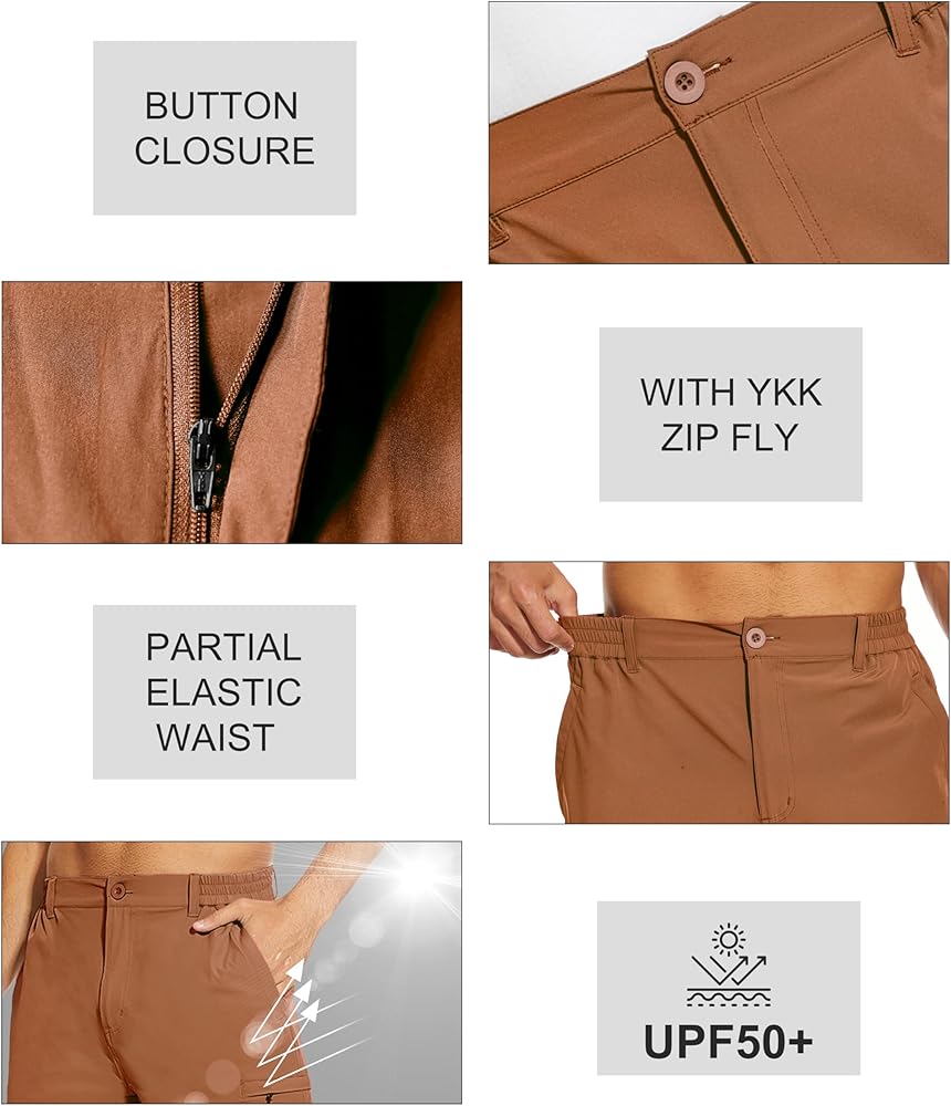【Elastic Waistband & Button Closure】: Men's fishing shorts with an elastic belt portion are made to fit average-sized bodies. Your wearing experience will be comfortable thanks to the elastic belt design. Work shorts for men have a button-end closure, and the YKK zipper design offers secure support so you won't feel self-conscious wearing stretch hiking shorts.