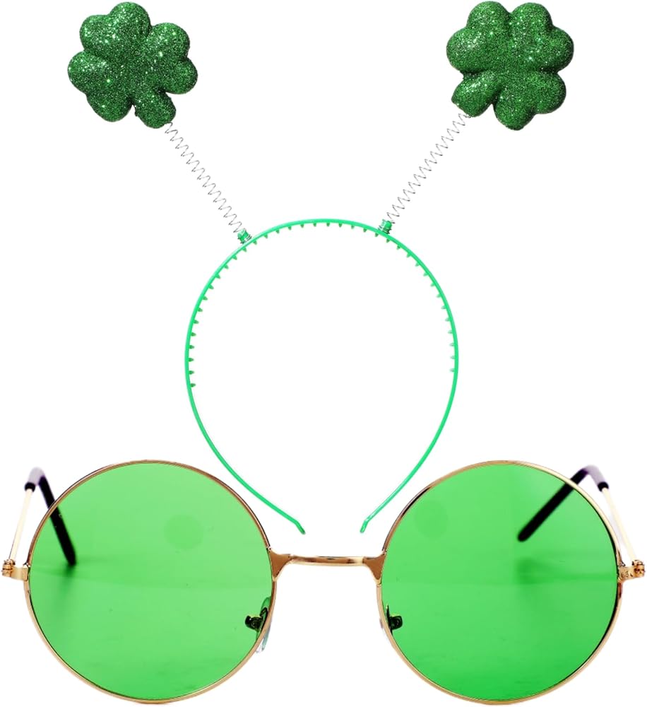 St Patrick's Day shamrock headband are made of plastic, which is lightweigh, good flexiblity, comfortable to wear, while the sunglasses feature green lenses and a gold frame. Whether you're attending a parade, party, or just want to add a touch of Irish flair to your outfit, these headband and sunglasses set are the perfect choice.