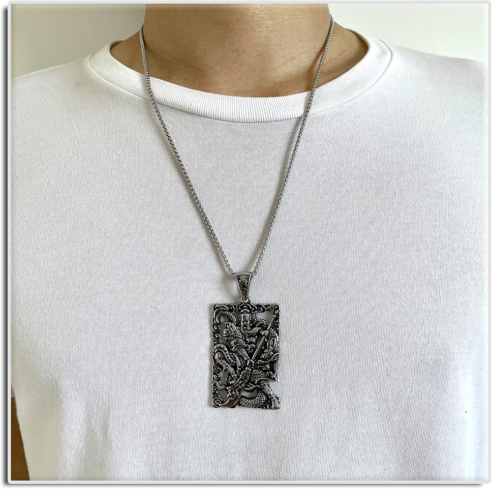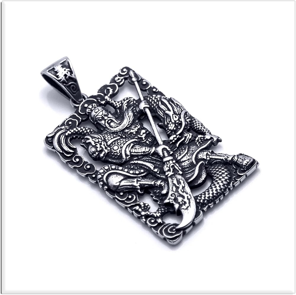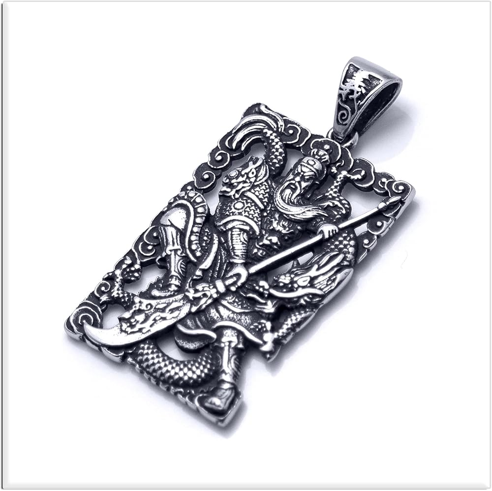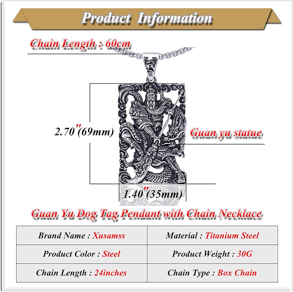 Xusamss Punk Rock Titanium Steel Warrior Guan Yu Dog Tag Pendant Necklace,24inches Box Chain