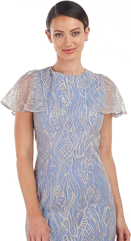 Part of a collection that steps into the new year reflecting the beauty of the sunset—with golden tones alongside the soft beauty of rich pastels. Introducing our Meadow cocktail dress, designed with embroidered mesh on a sophisticated sheath silhouette. Framed by a jewel neckline—it features cape sleeves and partially lined garments throughout.