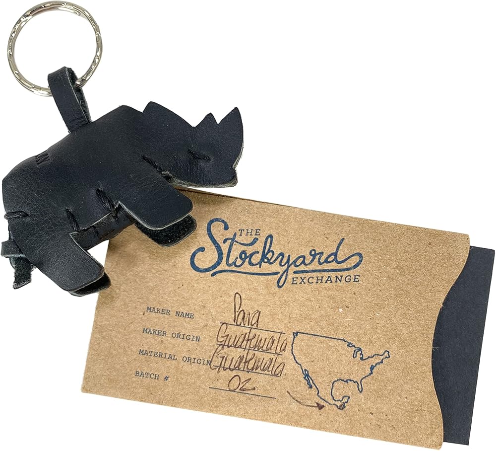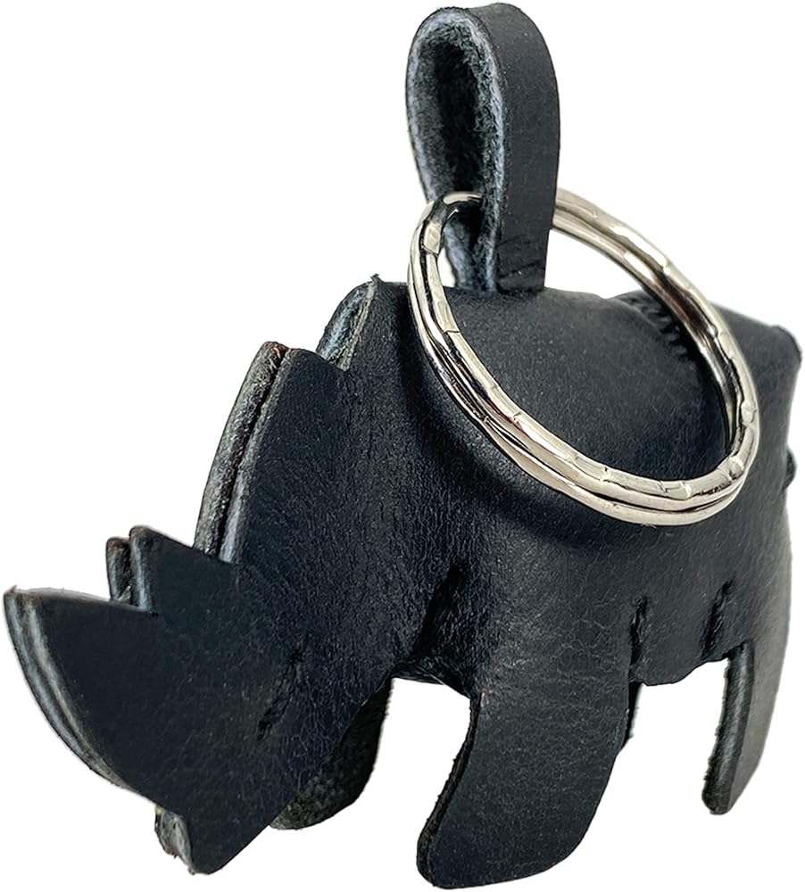 Hide & Play, Rhino Keychain Handmade from Full Grain Leather - Stylish Keyring Organizer, Easily Attach to Keys, Cute Accessory - Charcoal Black, Charcoal Black, Unique