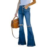 Sexyshine Women's Bell Bottom Jeans High Waisted Classic Retro Ripped Hole Denim Long Wide-Leg Flare Pants