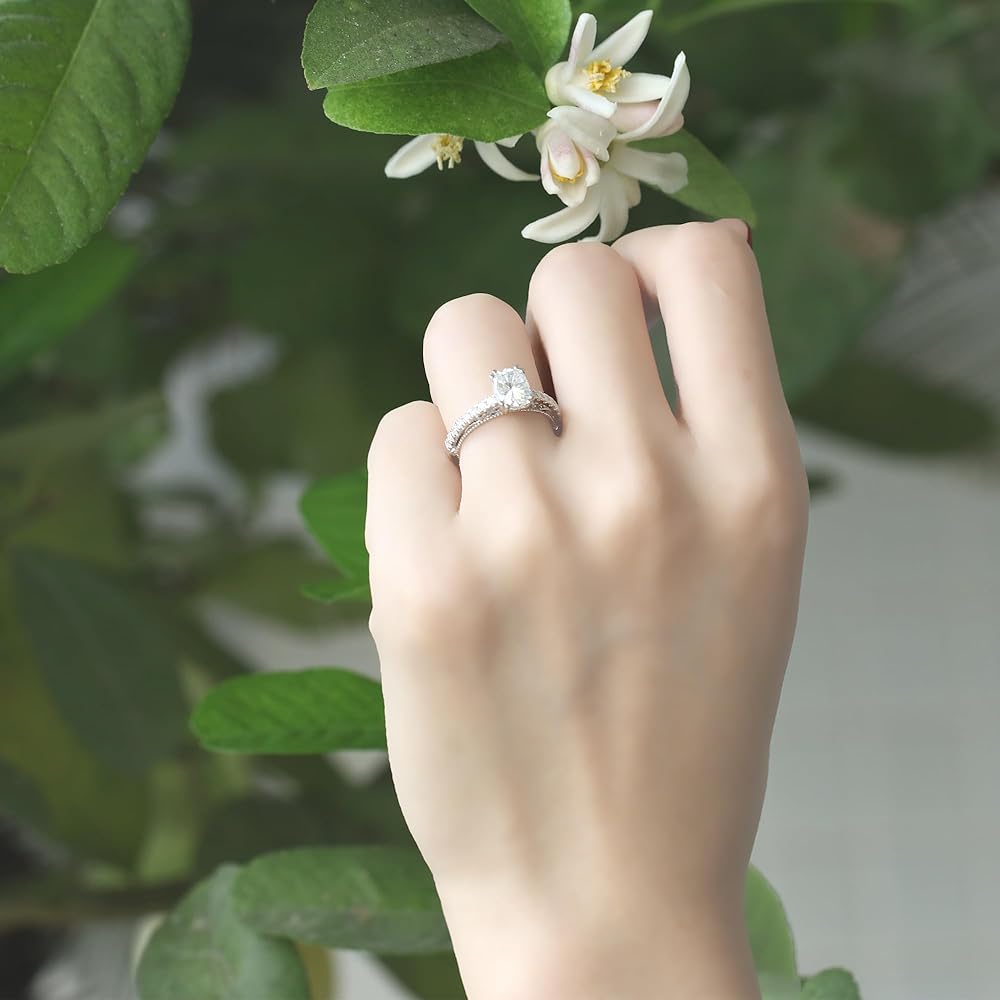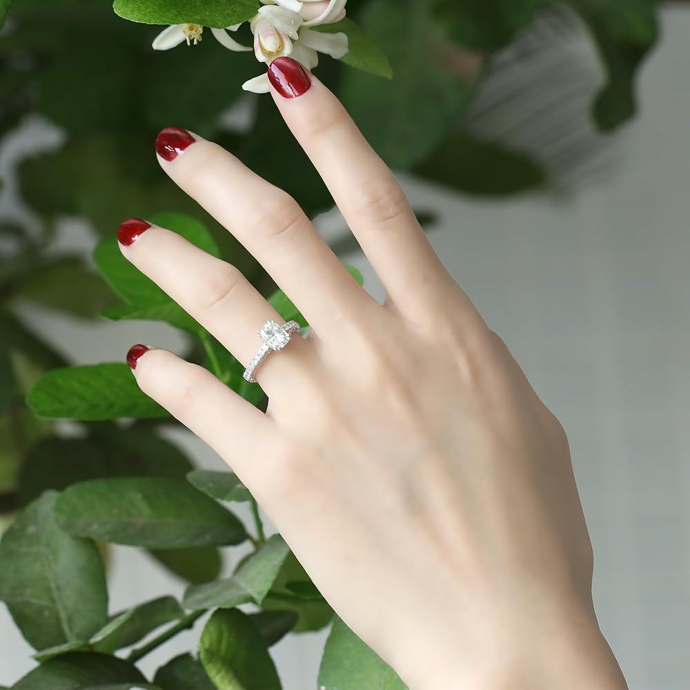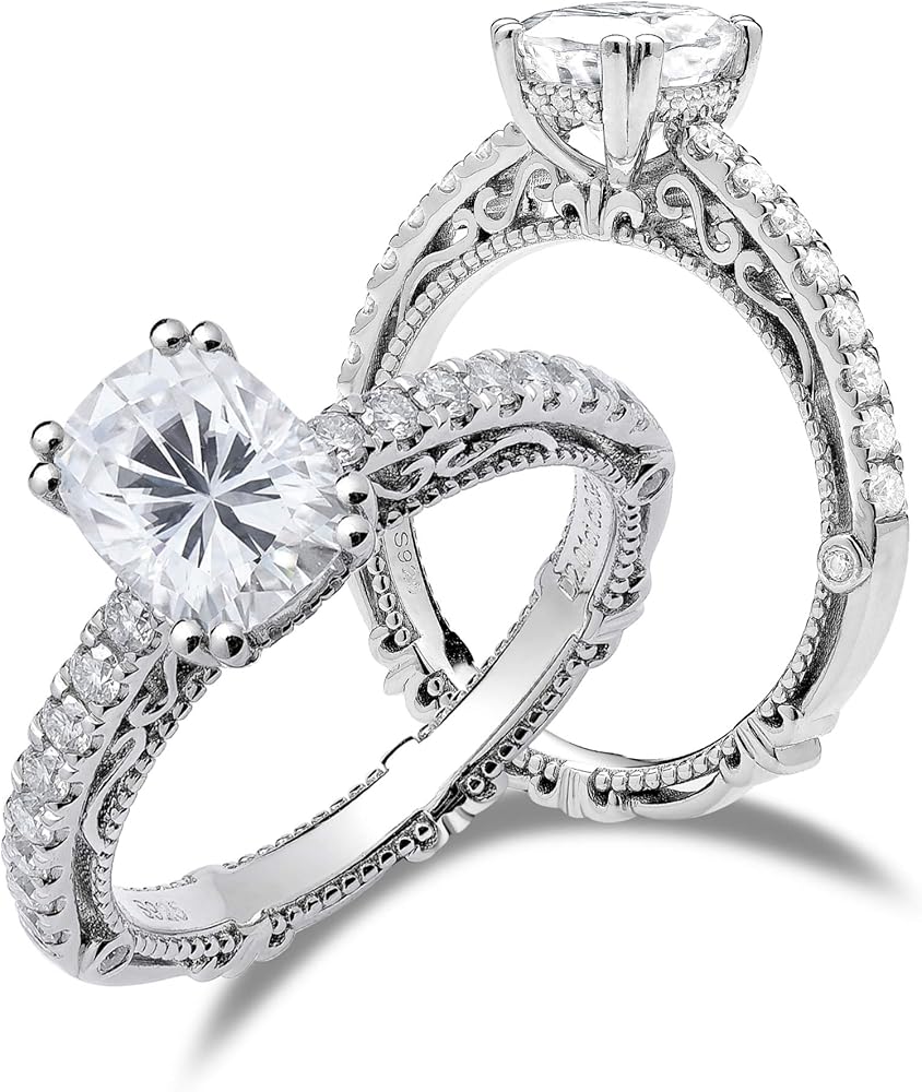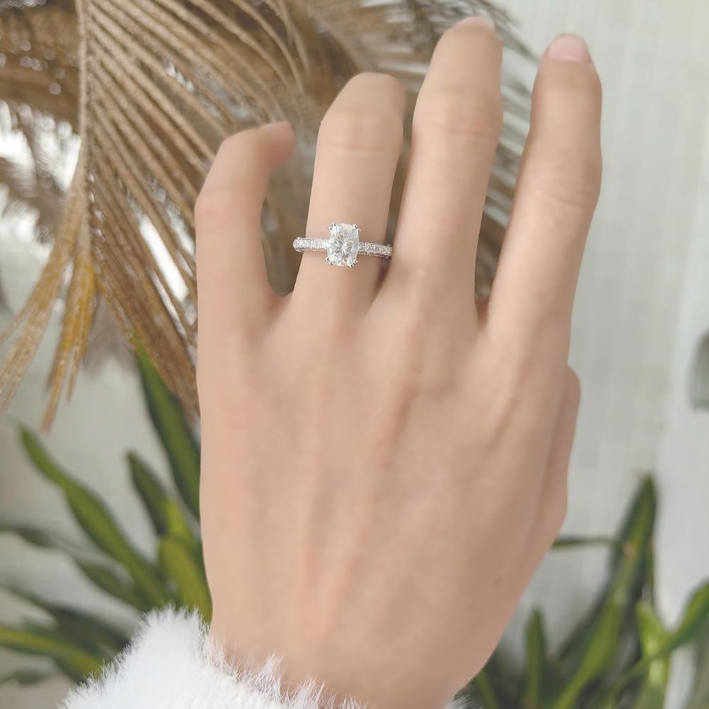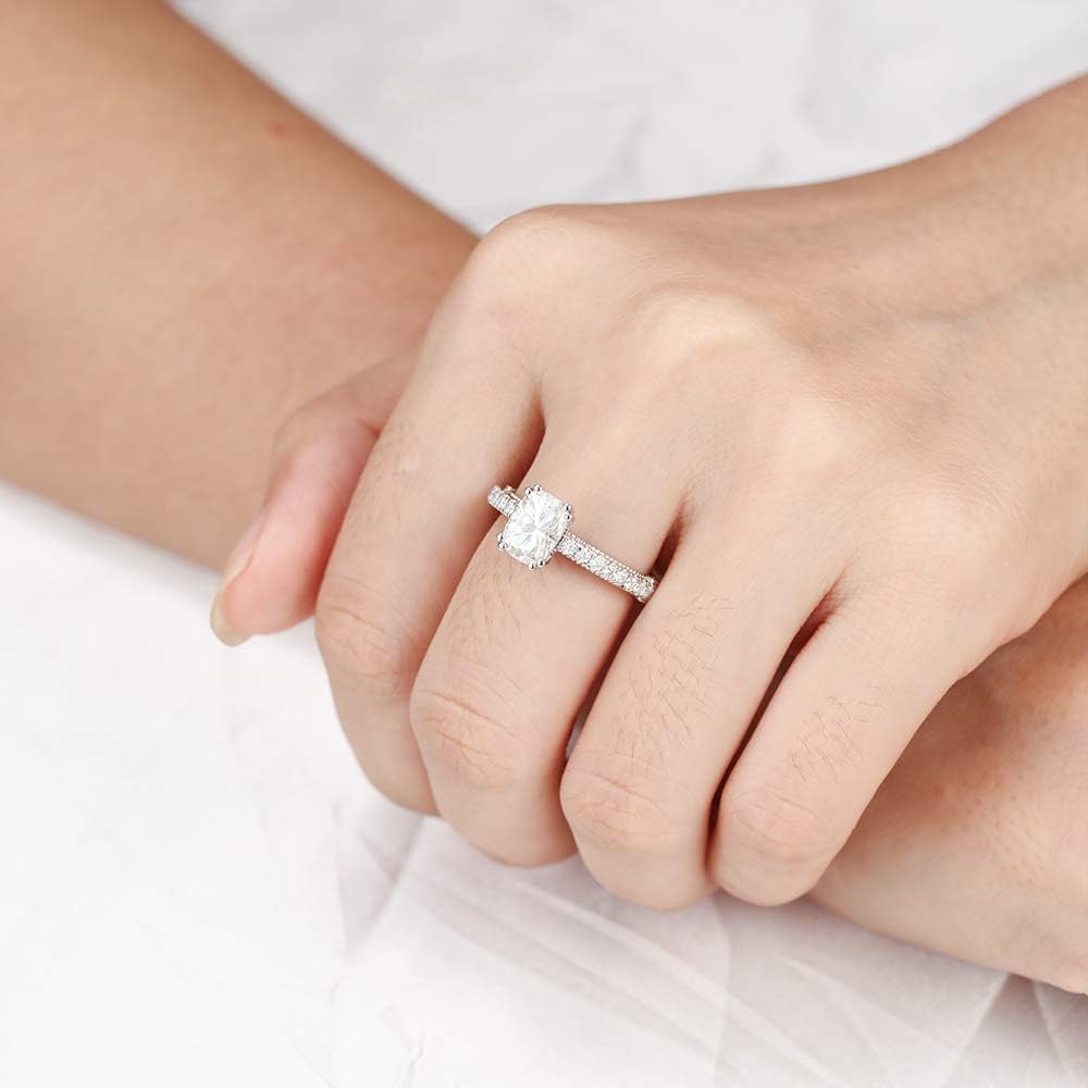 DovEggs Moissanite Engagement Ring for Women 2ct 6x8mm Cushion Cut Vintage Solitaire Wedding Anniversary Ring Promise Rings Sterling Silver with 18K White Gold Plated