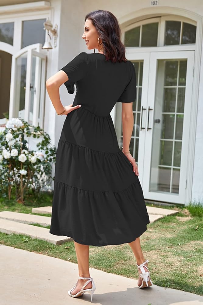 𝑺𝑶𝑭𝑻 𝑨𝑵𝑫 𝑩𝑹𝑬𝑨𝑻𝑯𝑨𝑩𝑳𝑬 𝑭𝑨𝑩𝑹𝑰𝑪𝑺: Womens tiered midi dress is made of soft and comfortable fabric, giving you a breathable and cool wearing experience. The fabric is non-see-through, lightweight and flowy, making it a must-have summer dress for your closet