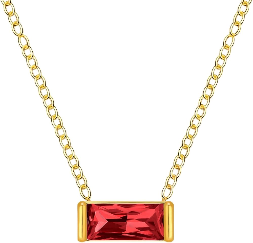 MISS RIGHT Dainty Emerald Cut Diamond Birthstone Necklace 18K Gold Plated for Women Trendy, Cute Baguette Cubic Zirconia Crystal Pendant Necklaces Birthday Gifts