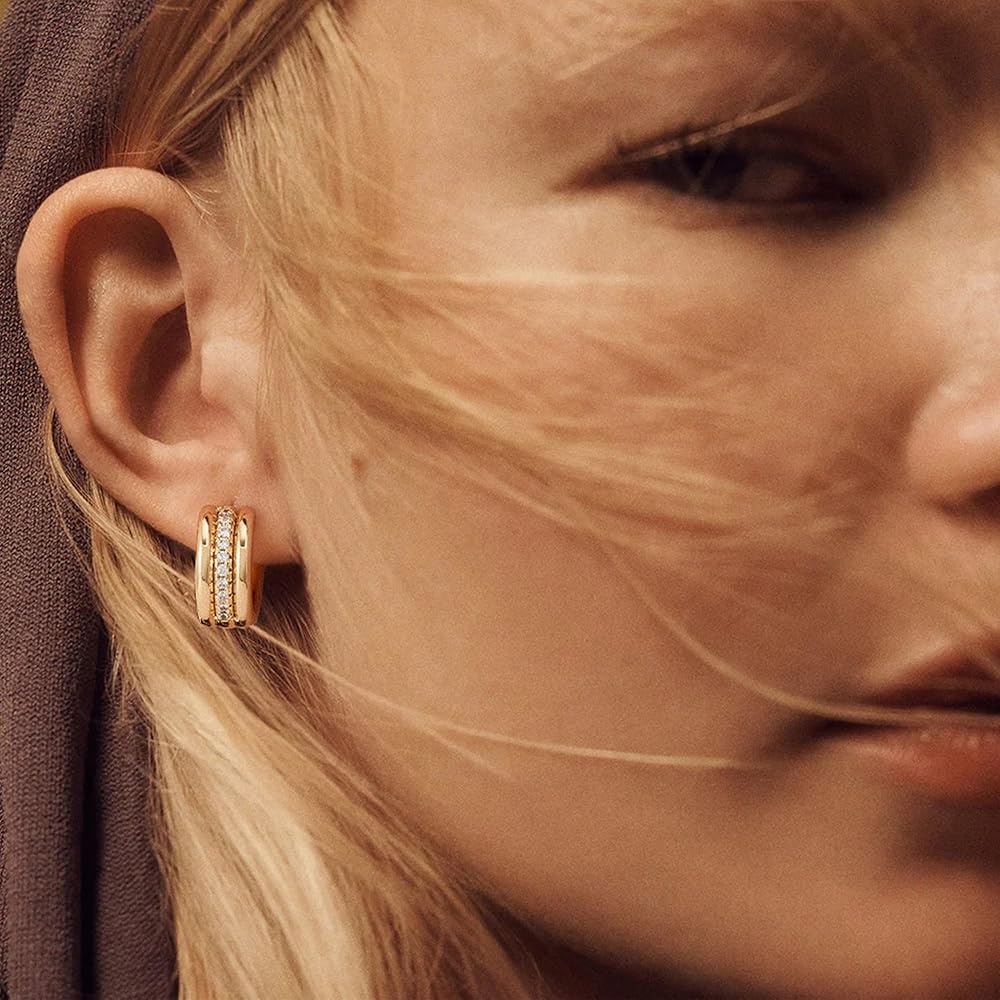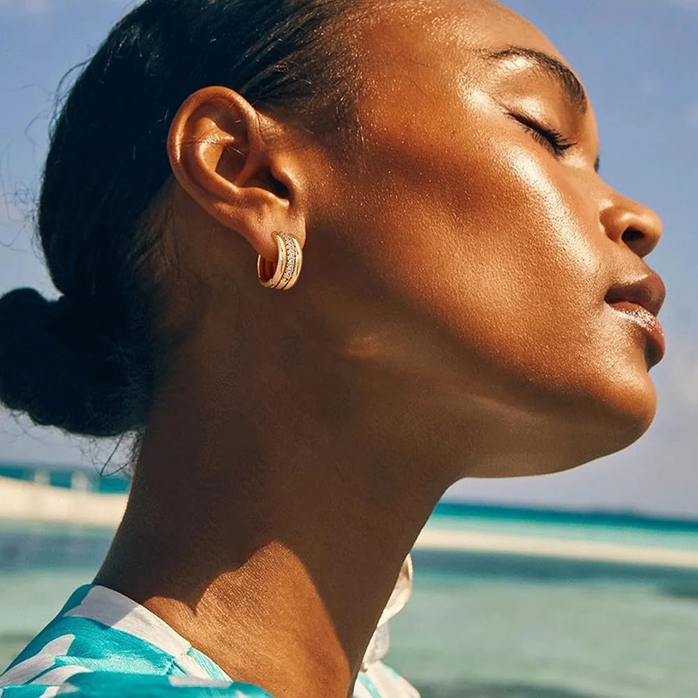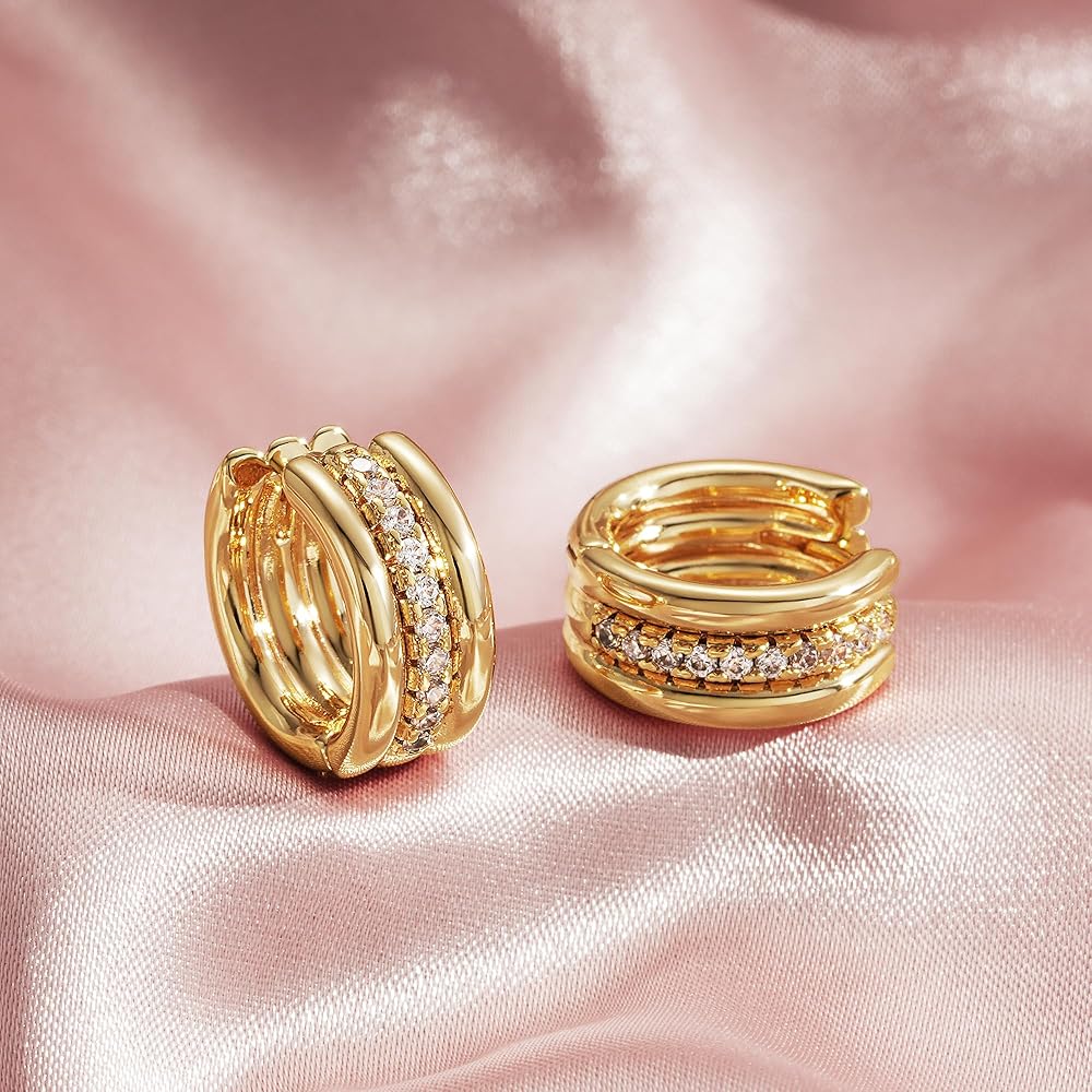 LOYATA Huggies Hoops Earrings for Women 14K Gold Plated Hoop Earrings Cubic Zirconia Diamond Dainty Earrings Hypoallergenic Simple Jewelry Gift for Women Girls