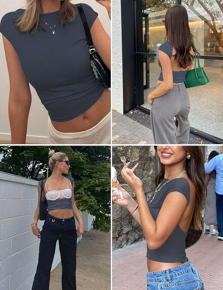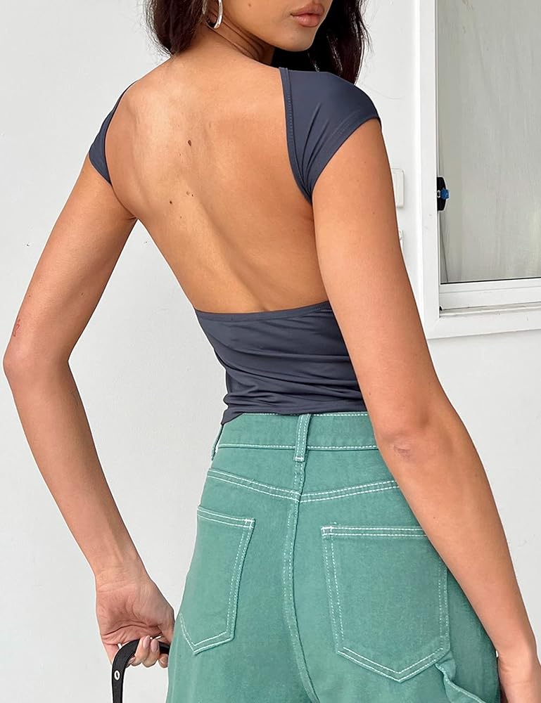 ♥♥Open Back Top & Chic Design: This y2k clothing, backless top, going out tops for women, open back tops for women, crop tops, short sleeve shirts, crew neck, slim fit, solid color, tight shirts for women, summer tops for women. Backless and cut out style, multi way wear-Both front and back can be worn with different items to show different fashion styles, highlighting your good figure.
