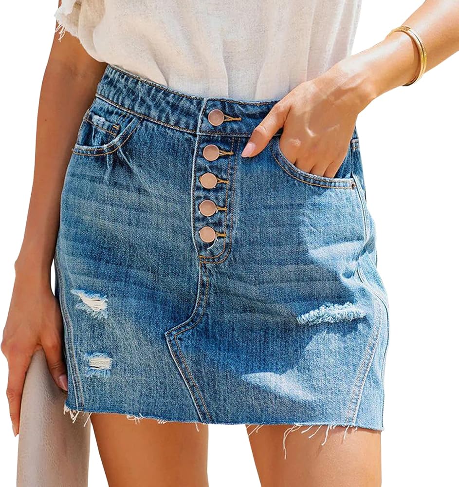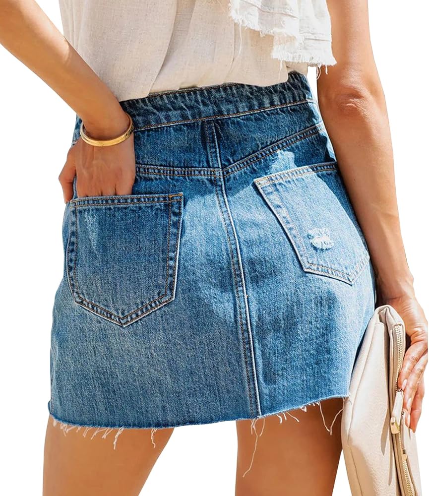 YUZIBAO Women's High Waisted Jean Skirt Distressed Ripped Fringed Denim Short Skirt Slim Fit Mini Skirt