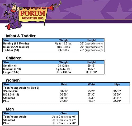 Women's standard size designed to fit 34 to 38-inch bust and 26 to 32-inch waist; costumes are not sized the same as clothing