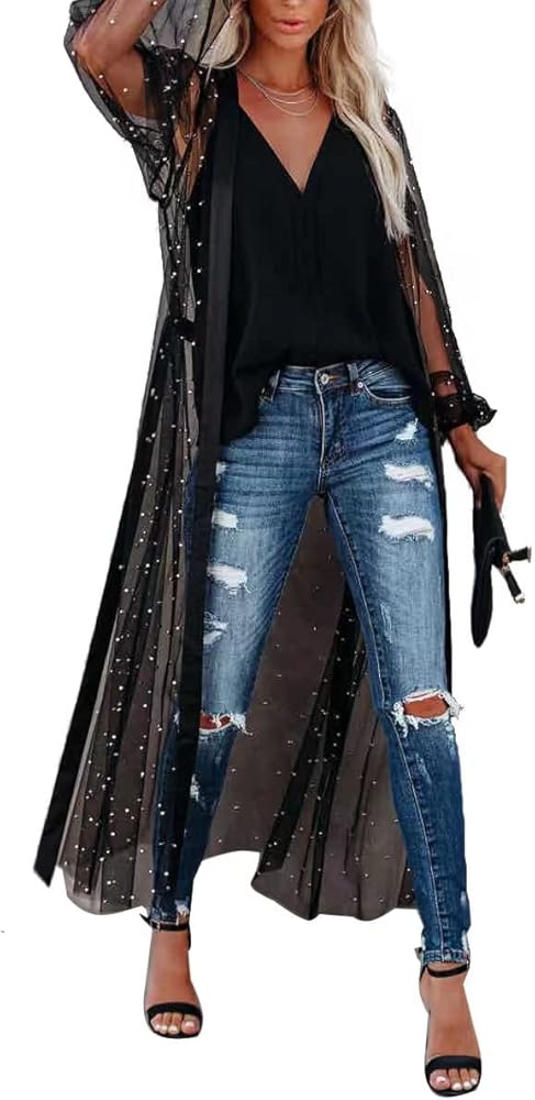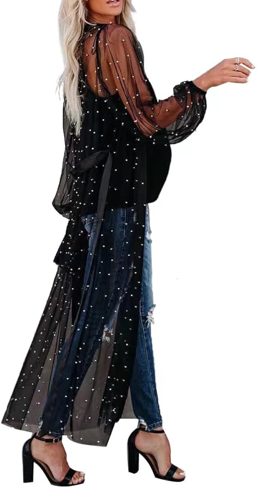 Women Swimsuit Cover Up Bathing Suit Kimono Long Beach Dress Floral Lace Bikini