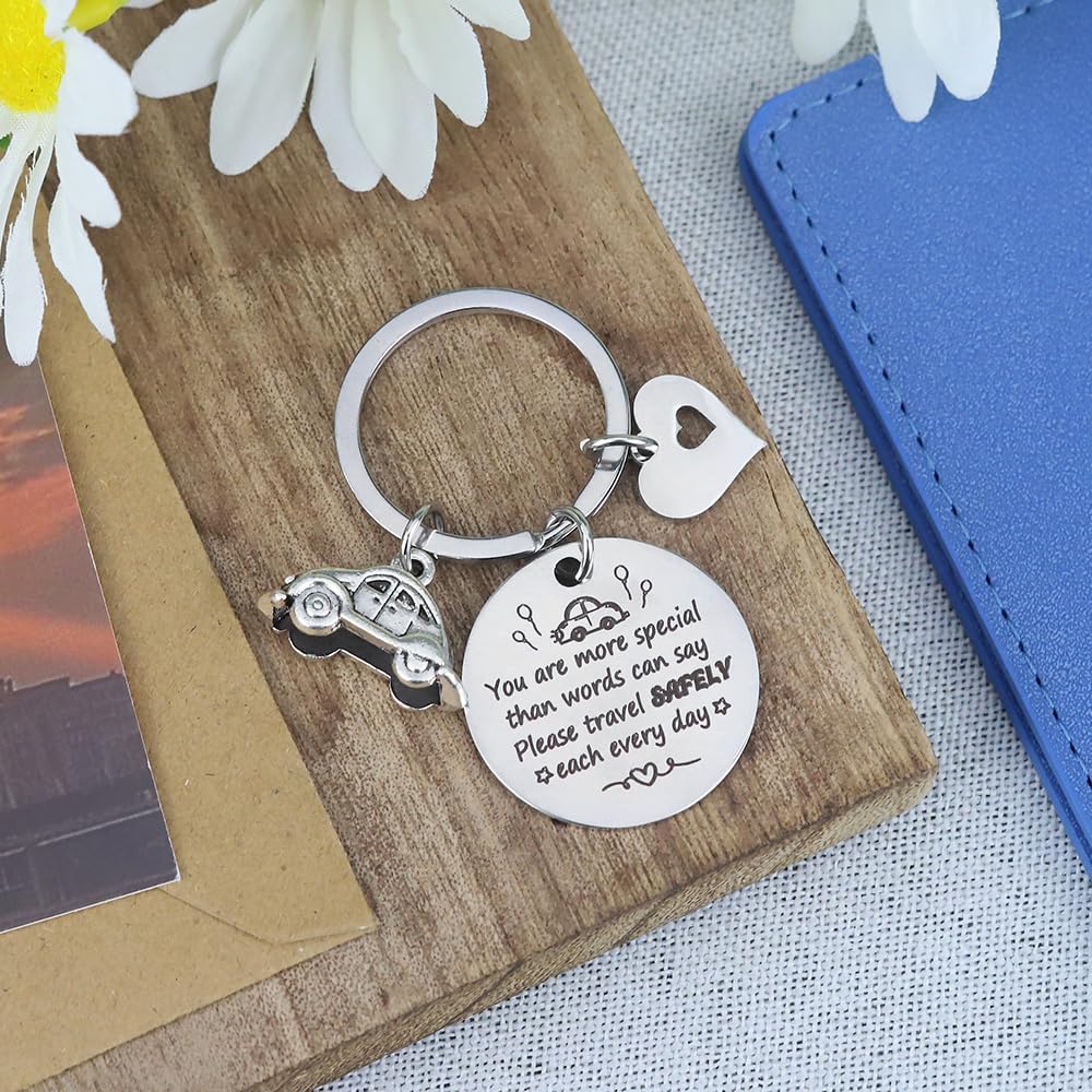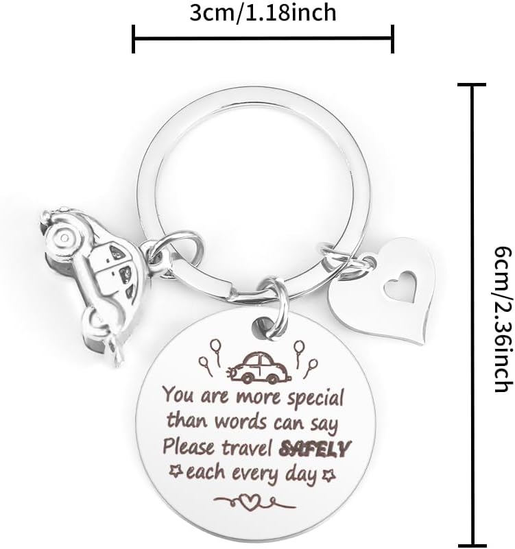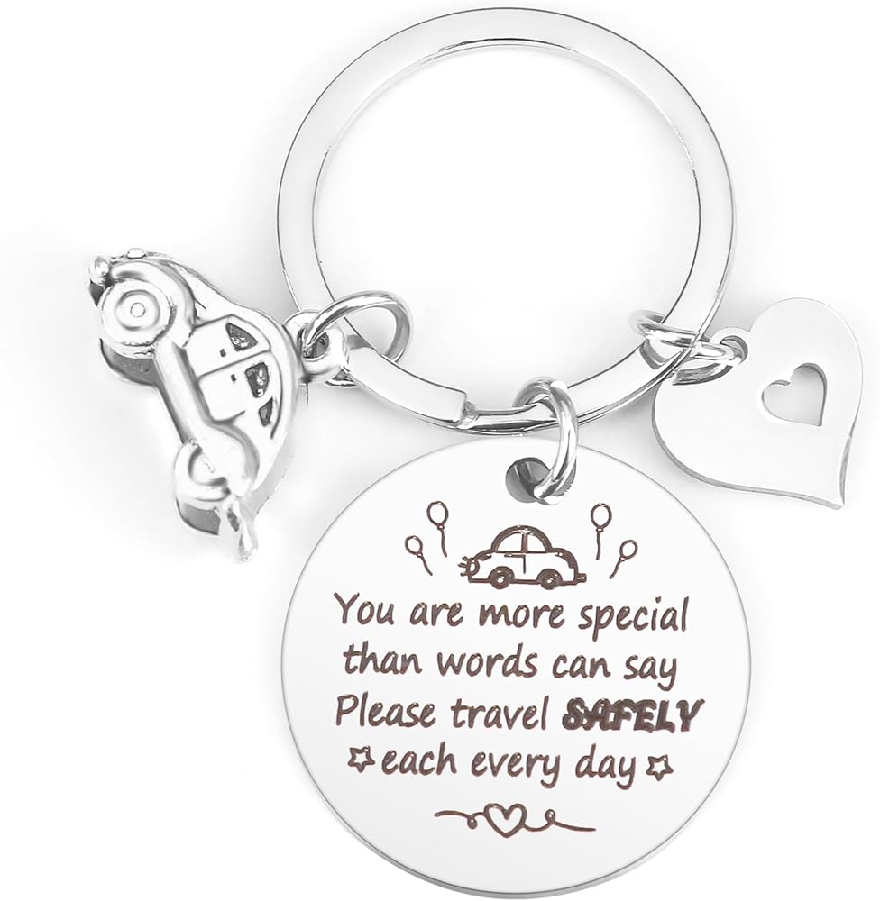 >Driver Keychain< - Front engraved "You are more special than words can say. Please travel SAFELY, each every day." These warm and warning drive safe words on your keychains for a driver is a special way to show your love to him her which could remind him her of being careful on the road every moment and everywhere so that he she could drive in a more secure way.