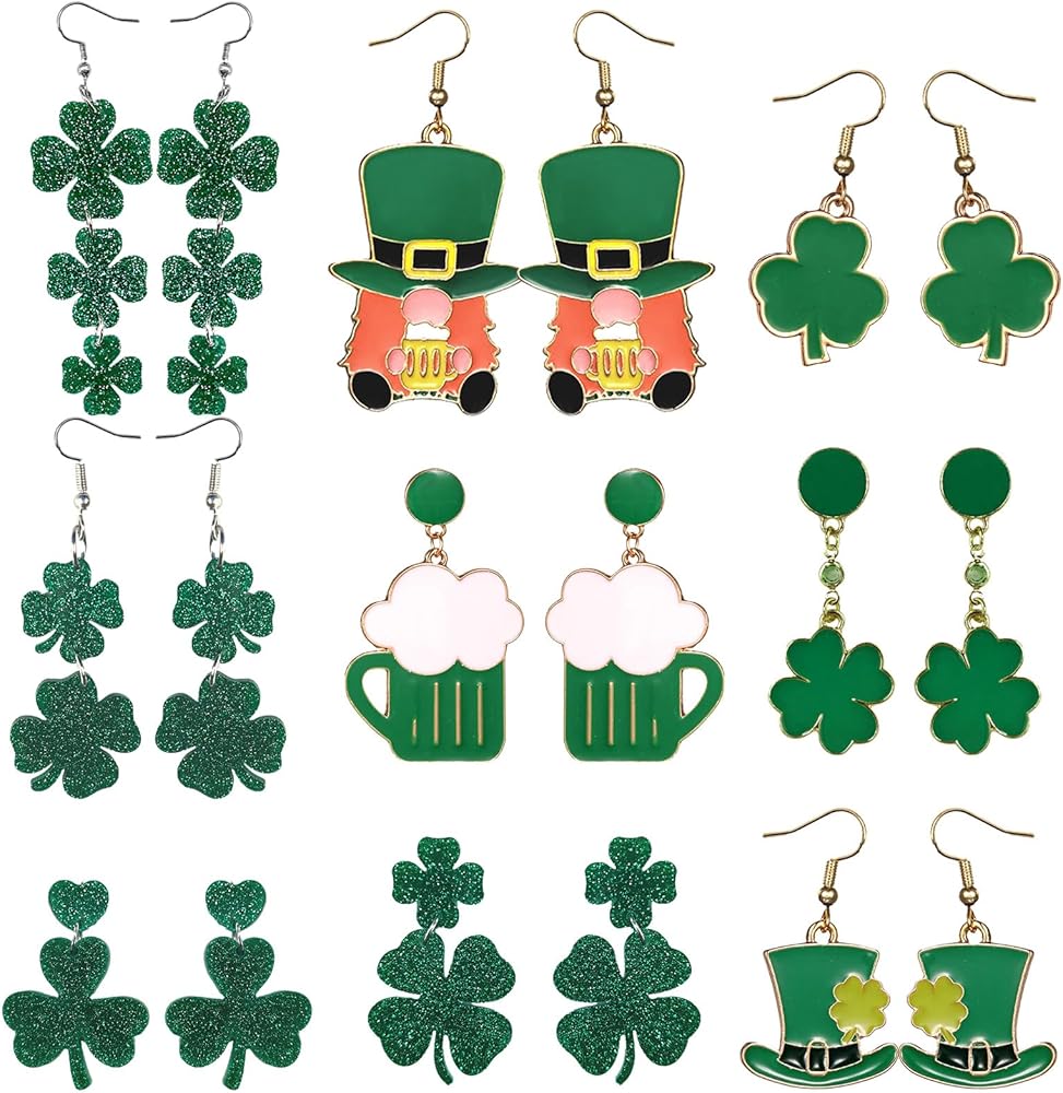 【St patricks day earrings for women】The earrings made of light-weight plastic that earring hook and comfortable for long time wear, the green color match with green shmrock glasses made a perfect match for this special holiday,carry a good luck for party favors