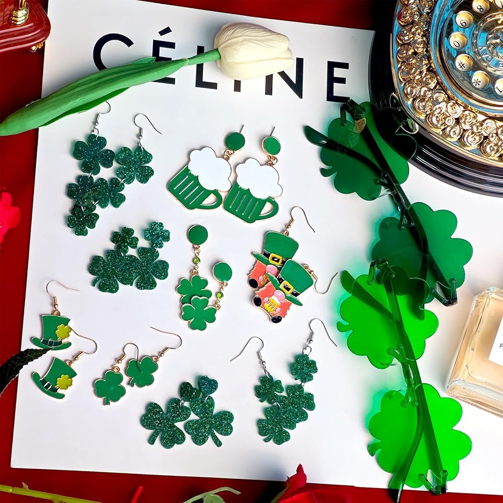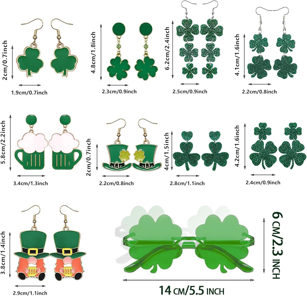 【St.Patrick day decorations】Either for a decoration or match with any outfit dress for this special holiday celebration, it will be a great st patrick day accessories and shamrock party favors,st pattys day earrings and st pattys sunglasses is a great combo set for outfit dress fit.