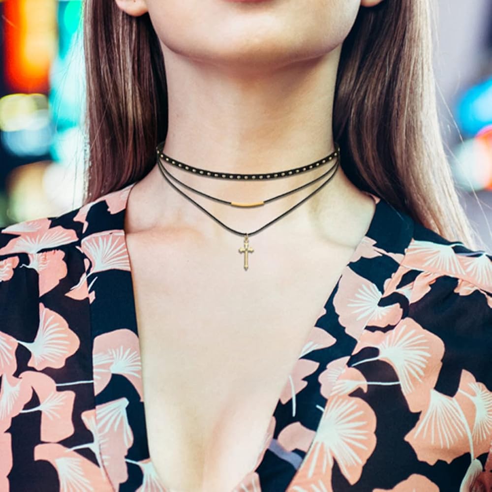 < CROSS CHOKER > Suitable for Halloween Festival Outfits. Religous Design with Cross Symbol, Good Health and Happiness, Adds Charming to Everyone who Wear.