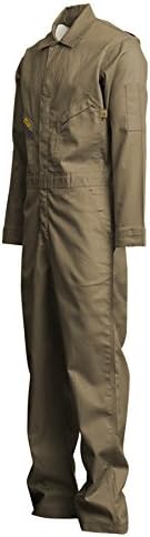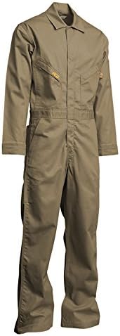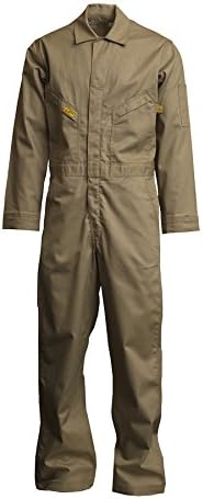 Lapco FR's UL Classified NFPA 2112, flame-resistant gold label deluxe coverall is reinforced for durability and includes many features for compliance and comfort. Triple needle stitching on inseams, out seams, and arm seams. Lightweight for comfort, but durable. Elastic at back of waist. Pencil pocket on left arm. Zippered chest pockets and left back pocket to keep items secure. Sewn with Nomex thread. Brass zippers with Nomex tape. Covered snaps for electric-arc protection.