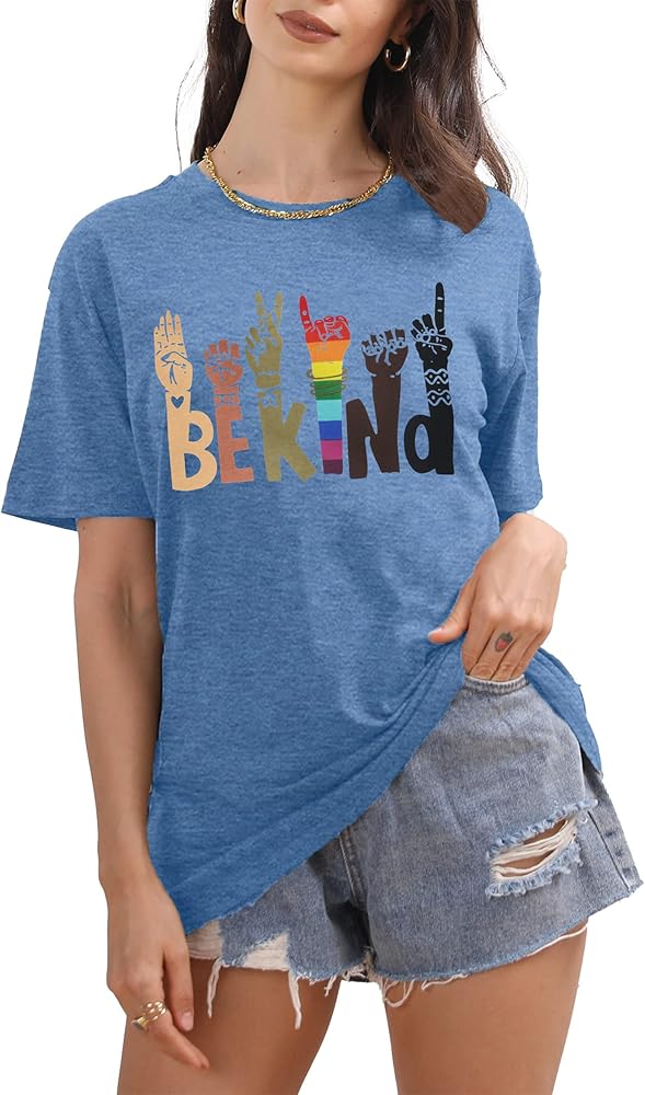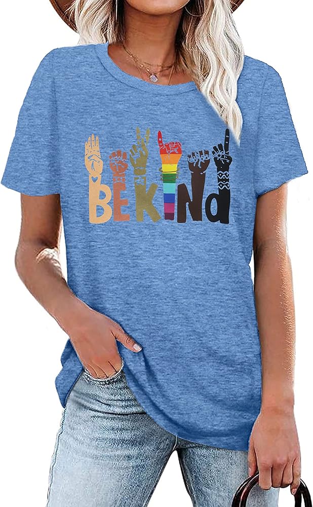 ✔Funny Design --- Kindness shirts for women, kind hands graphic tshirts, rainbow print t shirt, lgbt pride shirts tee, ladies inspirational shirt top, chic short sleeve t-shirt is suitable for teacher, mom, auntie, colleague or who loves rainbow tee shirt.