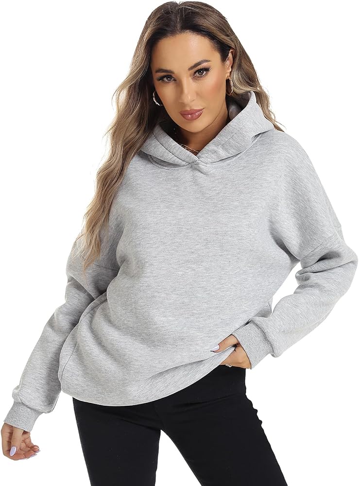 Design: Long sleeve oversized hoodie pullover, drop shoulder collar, Styled with a stretch ribbed hem, fall outfits for women, fashion simple style, fleece lining, it's thick and really soft inside, standard size, fall winter must-have hoodie.