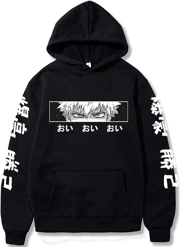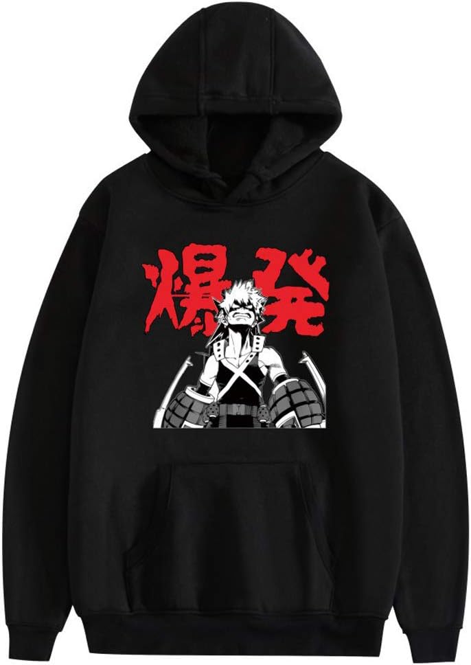 Adult Bakugou Katsuki cosplay Hoodie Sweatshirts Black Pattern Pocket Pullover for halloween outfits.