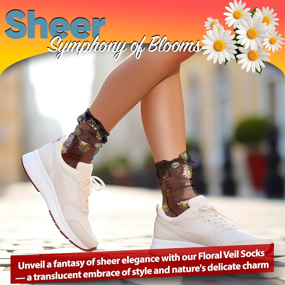 Fashionable and Sexy: The ultra-thin mesh and floral daisy patterns tulle socks add a sexy and cute flair to your look. Whether paired with dresses, skirts, high heels, or sneakers, these ultra thin clear socks will make you stand out with a unique sense of style.