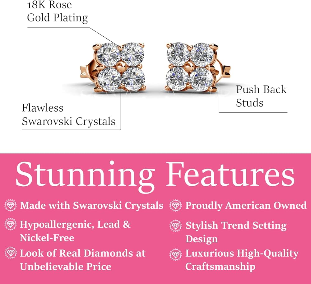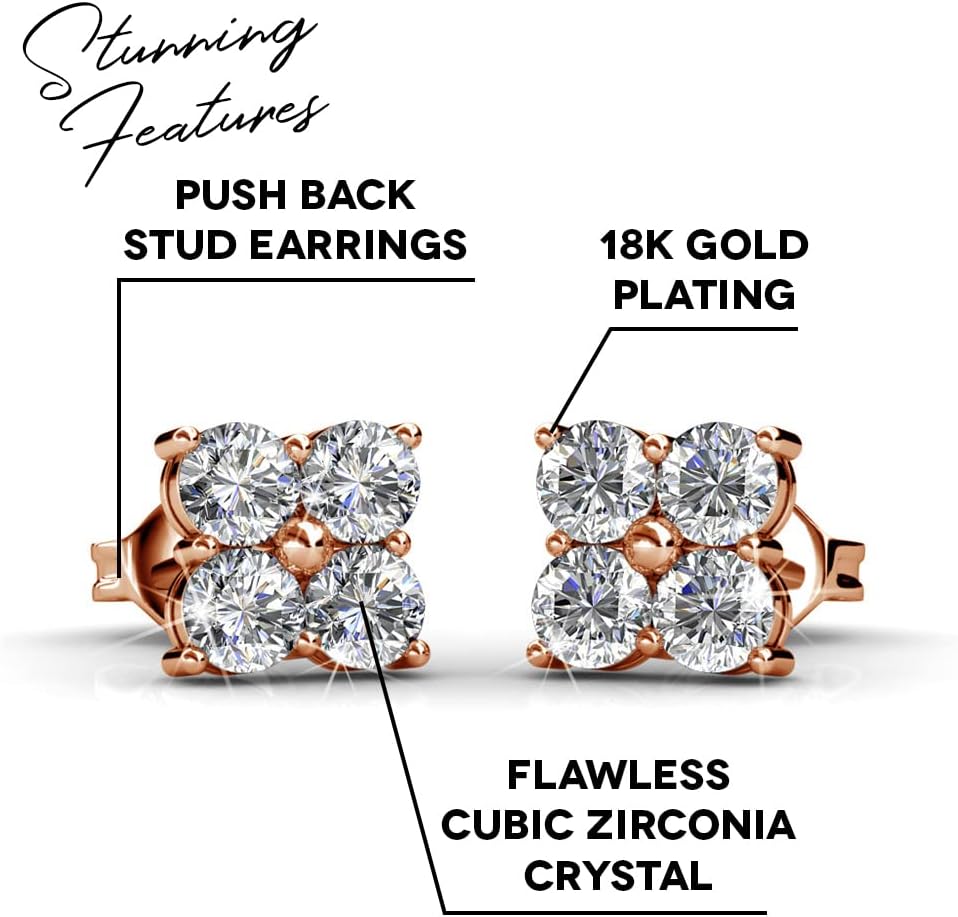 HIGH QUALITY LUXURY DESIGNER STUD EARRINGS These Rae pave stud earrings are beautifully crafted with crystals that will enhance any wardrobe choice making it the perfect gift for that special someone! KEY FEATURES: MATERIAL: 18k White Gold Plated Brass STONE TYPE: Crystals BACKING: Butterfly Lead-Free, Nickel-Free Includes Luxury Ribbon Jewelry Box BEST USES: Fashion Jewelry Bridal Jewelry Wedding Jewelry Special Occasion Jewelry Bridesmaid Jewelry Jewelry for Work Jewelry Gifts Fancy Jewelry GIFT IDEAS FOR HER - Women, ladies, girls, teens, children, wife, mom, daughter, girlfriend, her, wedding gifts ideas, girlfriend gift ideas, last minute gift ideas, bridal shower gift ideas, birthday gift ideas, teacher gift ideas, college gift ideas, teen gift ideas, engagement gift ideas, anniversary gift ideas, wife gift ideas, graduation gift ideas, or any gift for her. SHOP WITH CONFIDENCE - This is sold by Cate and Chloe, a leader in quality designer jewelry. Shop our entire collection which includes jewelry, necklaces, earrings, rings, bracelets, and other fine jewelry and accessories. Cate and Chloe strives to provide the highest level of quality, craftsmanship, and timeless designs that you can flaunt from the office to the red carpet.