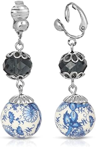 1928 Jewelry Montana Dark Blue and Blue Willow Beaded Drop & Dangle Earrings For Women, Vintage Romantic Chinese Ceramic And Porcelain Love Story Inspired Design, Made In USA