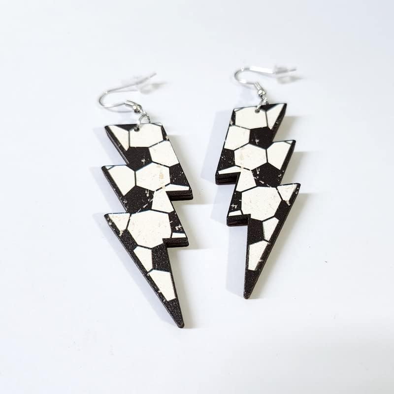 Creative fashion retro 70s 80s Wooden Sports Earrings, Lightning Bolt Drop Dangle Earring Baseball Basketball Volleyball Football Earrings Sports Fans Players Jewelry for Women Girls,bring you the most unique and fashionable everyday.