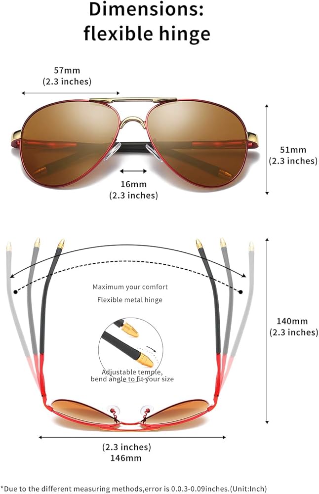 HIGH QUALITY MENTAL FRAME:Men's sunglasses use Metal Alloy makes the frame more durable and sturdy. Using antioxidant plating let the frame to make use of long time enough. Because of Skin-friendly nose pads ,it give you softable feeling for wearing.